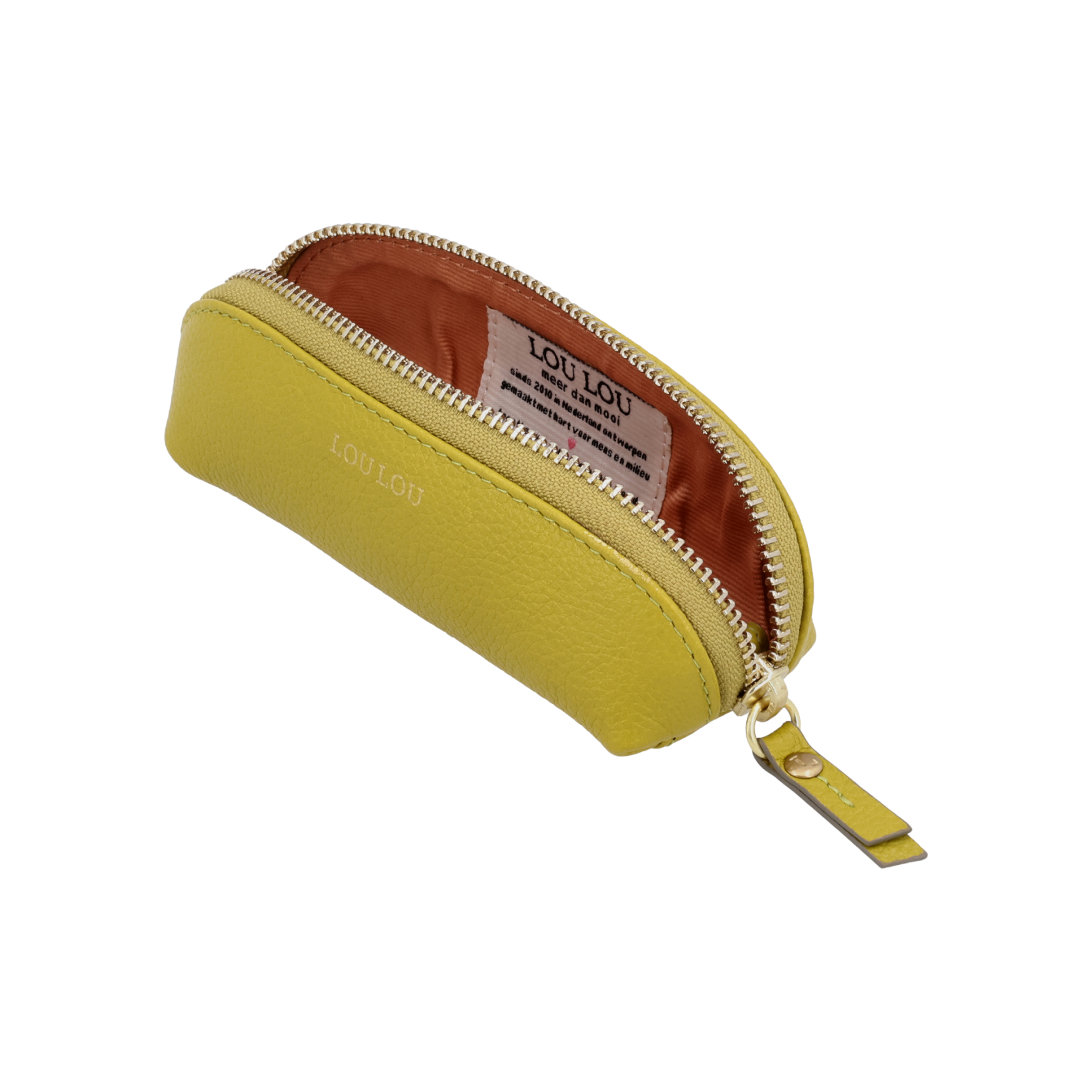Deze geelgroene MADAME DUBOIS van LouLou is compact maar heeft genoeg ruimte voor al jouw belangrijke essentials. Mooi soepel grain leer met mat gouden details. Zo is deze zwart leren etui een duurzaam cadeautje voor jezelf, of iemand anders natuurlijk.