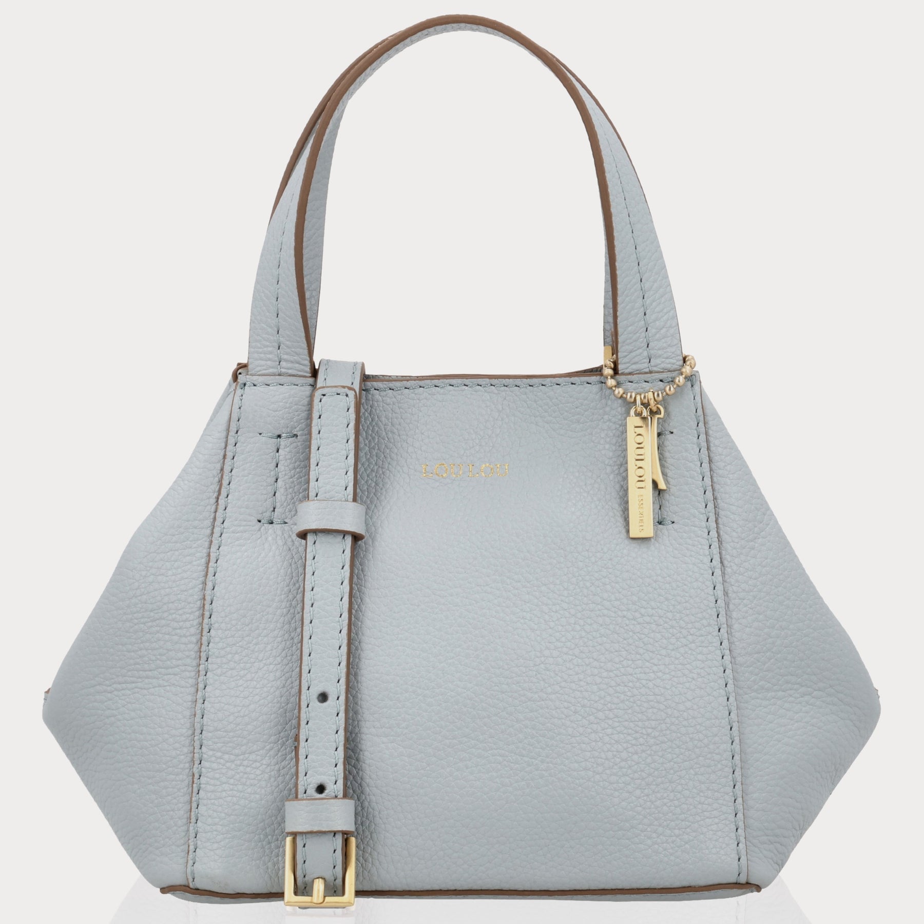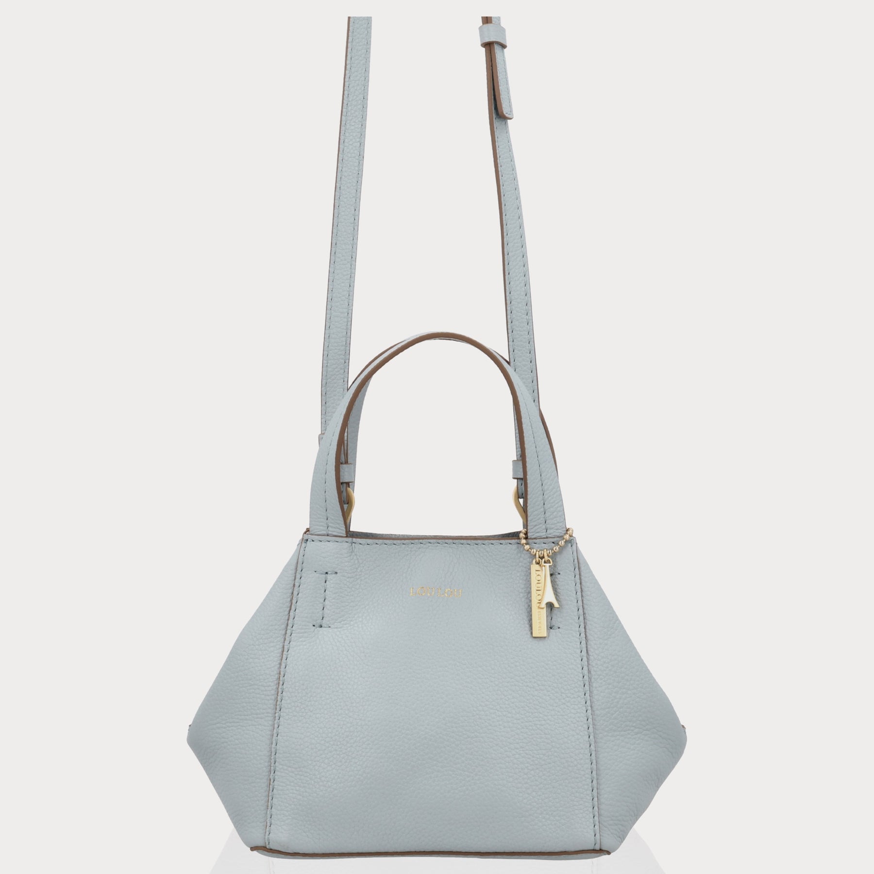 • Blue Aura grain leer met goudkleurige hardware