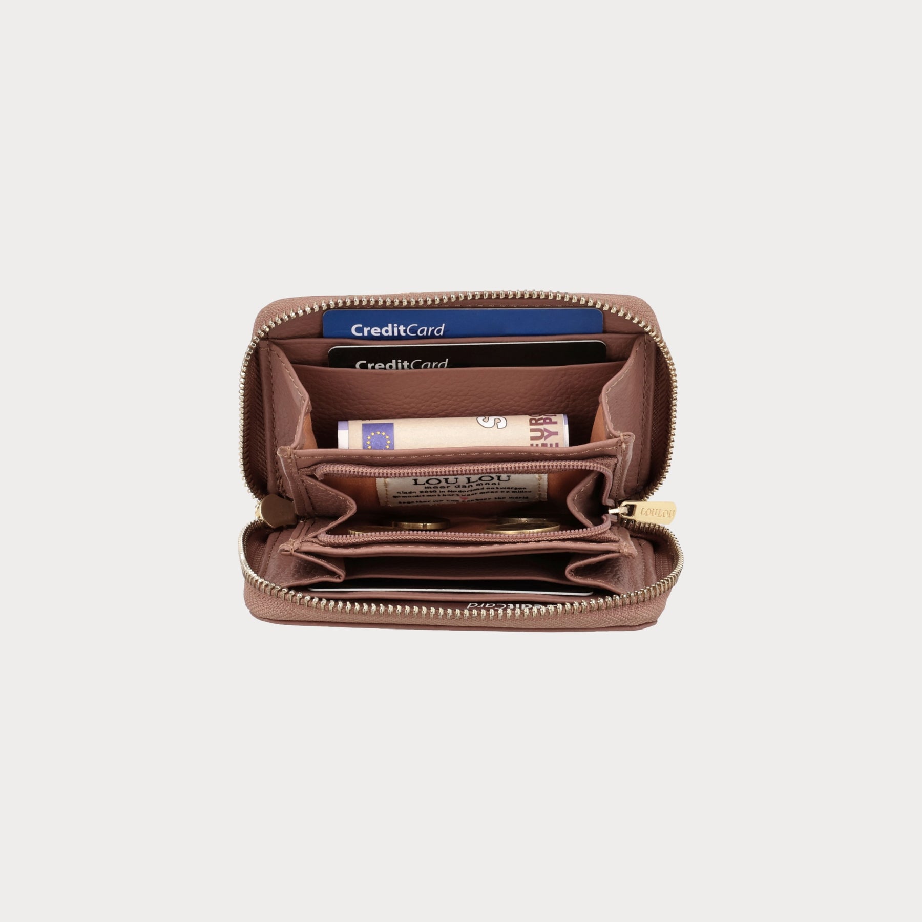 De PETITE EMILIE Mocha Mousse Gold is een charmant roze mini portemonneetje dat perfect combineert stijl met functionaliteit. Hij bevat vier creditcardvakjes, een fotovakje, een muntvakje én een extra vak voor briefgeld. Compact, elegant én praktisch.