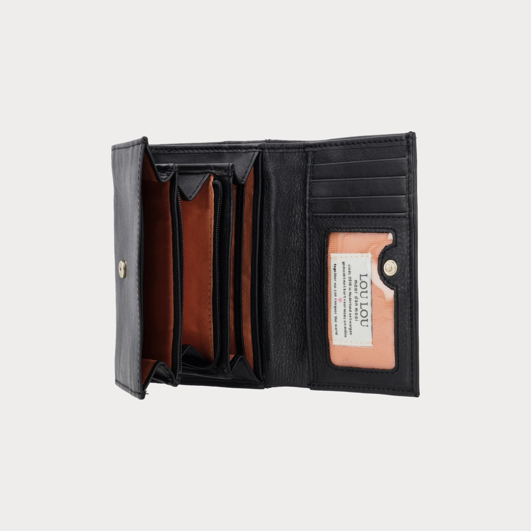 De PETITE FLEUR Black Gold is een elegante en compacte portemonnee in zwart klassiek leer. Ondanks zijn formaat is hij verrassend functioneel: met meerdere pasvakjes, muntvak, vakje voor briefgeld en extra steekvakken. Een stijlvolle keuze voor dagelijks gebruik.