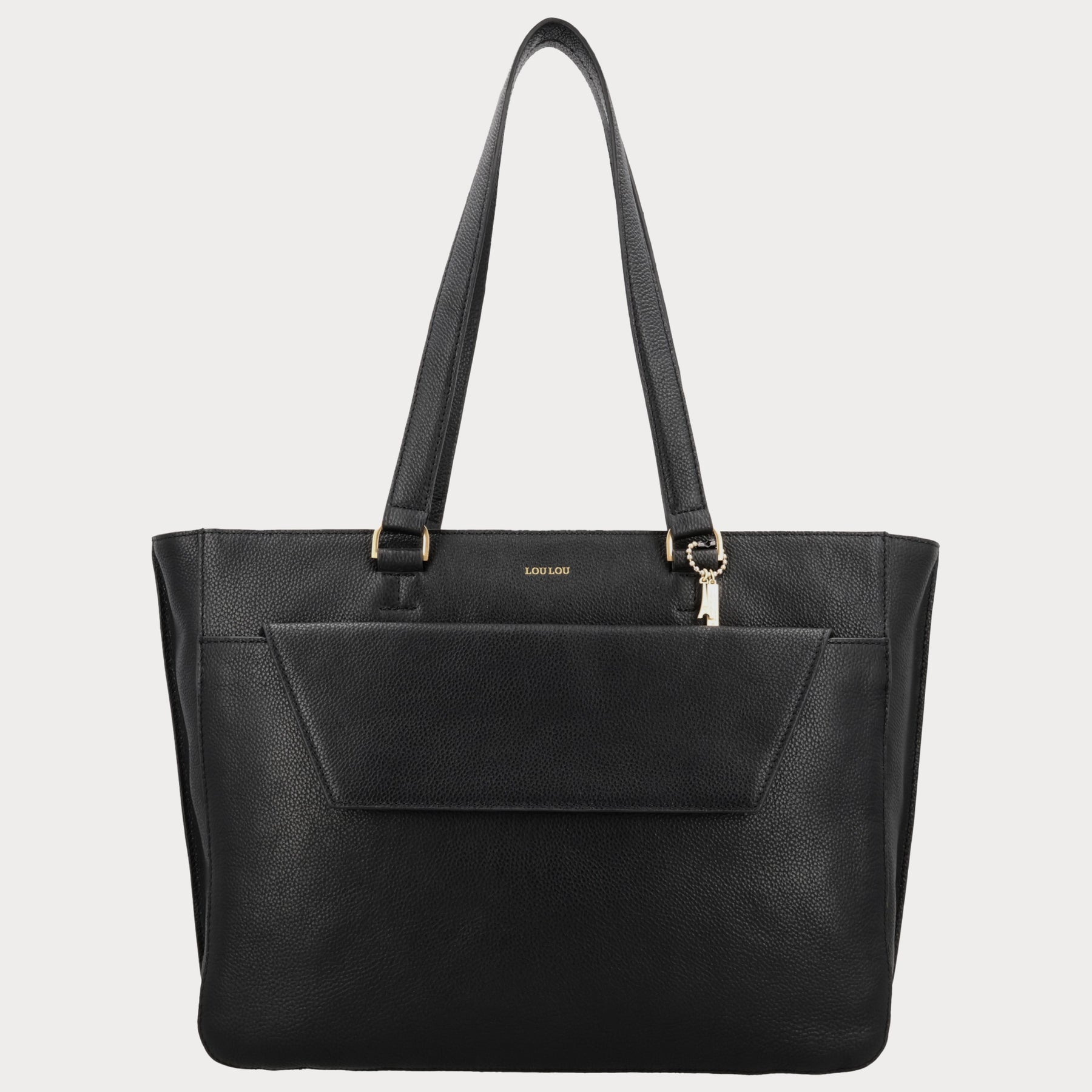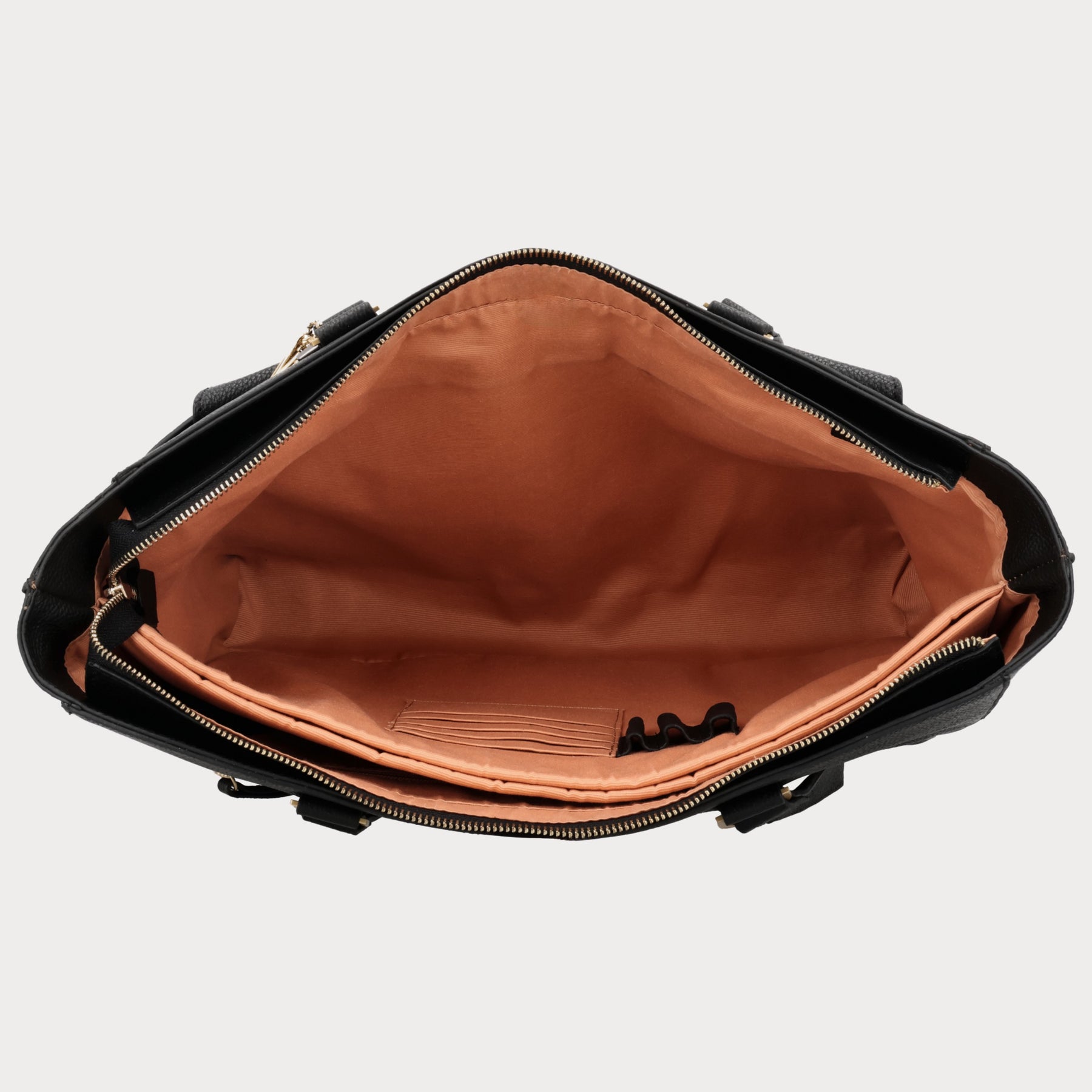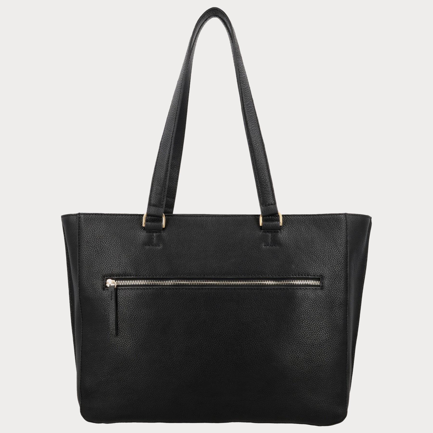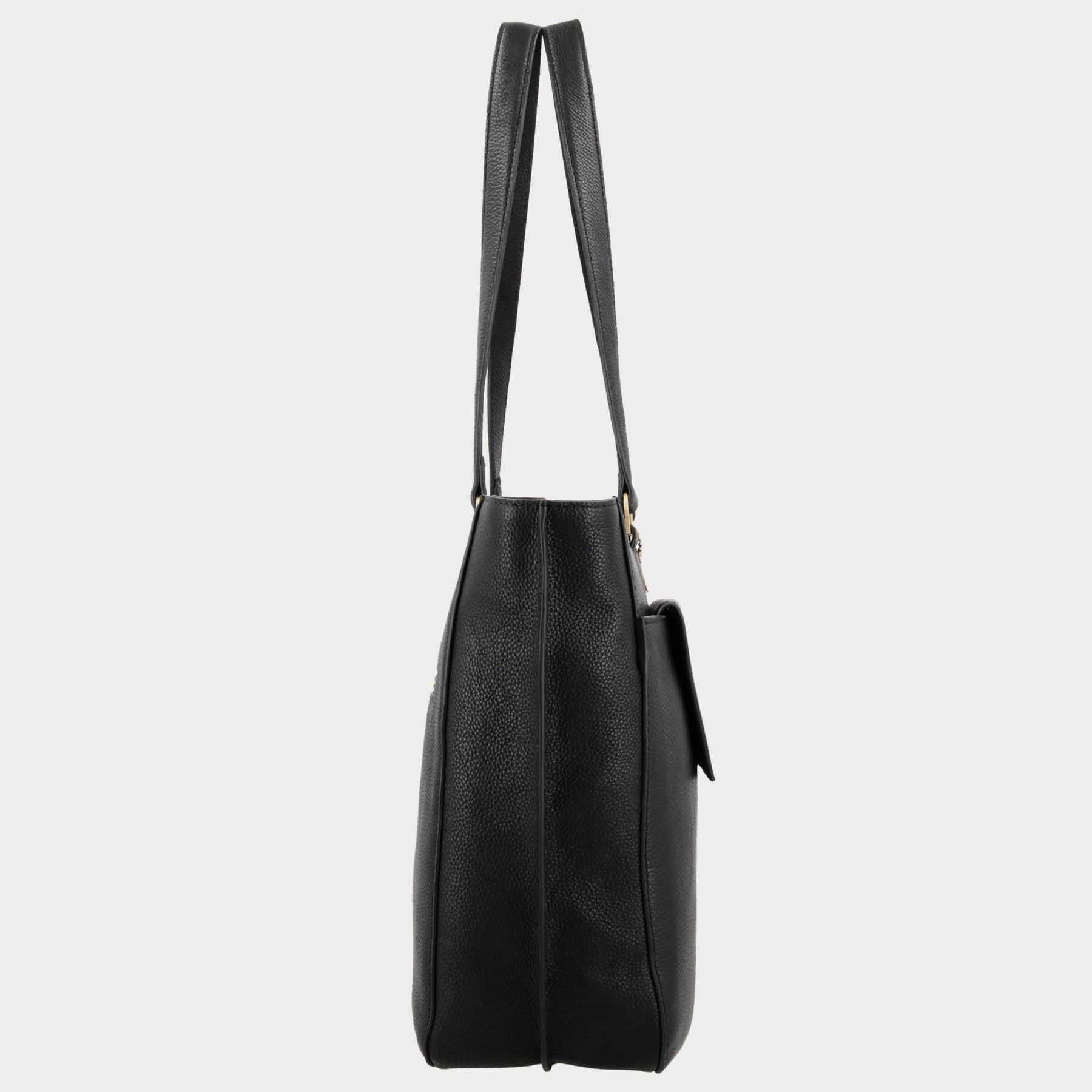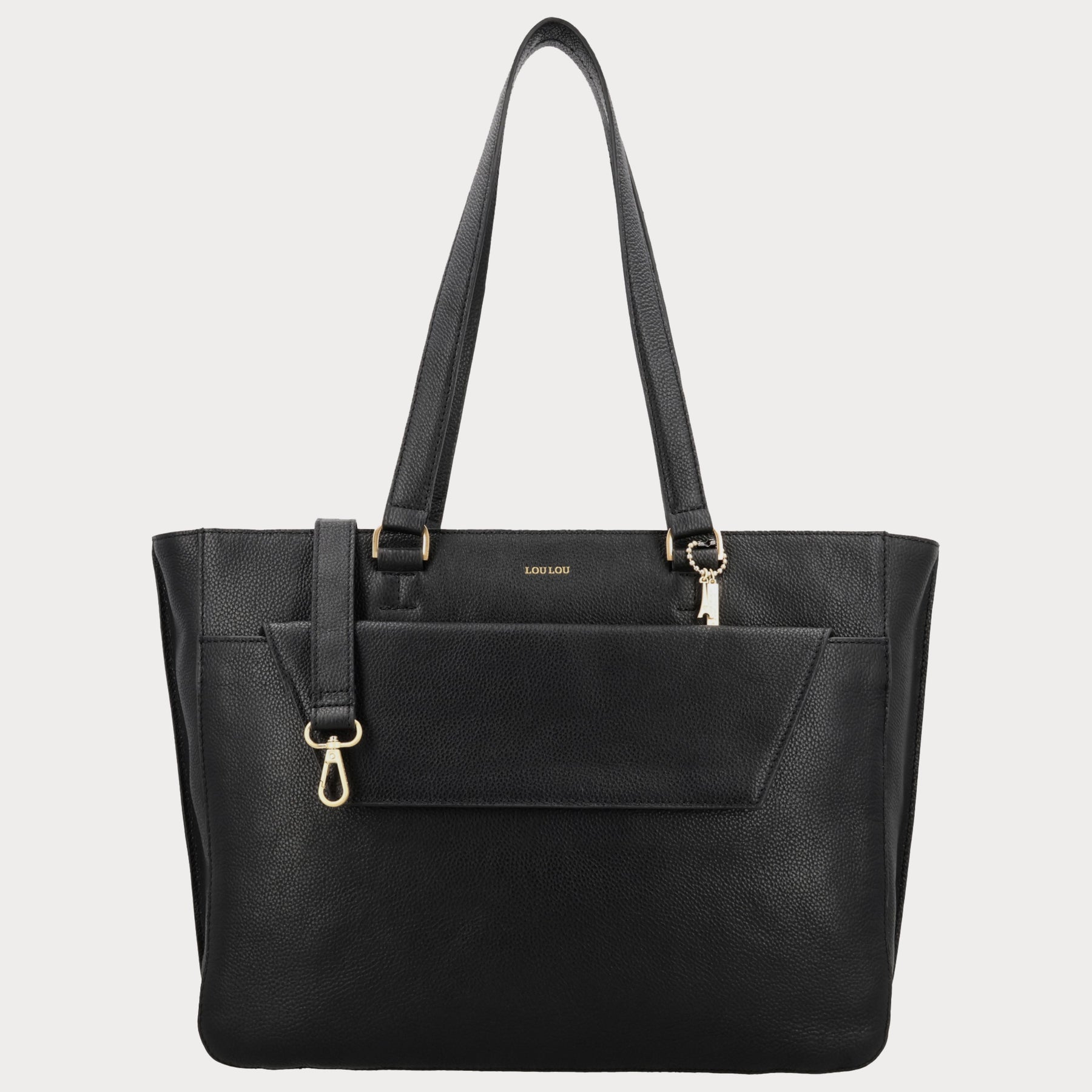 - Gemaakt van zwart grain leer met goudkleurige fittings