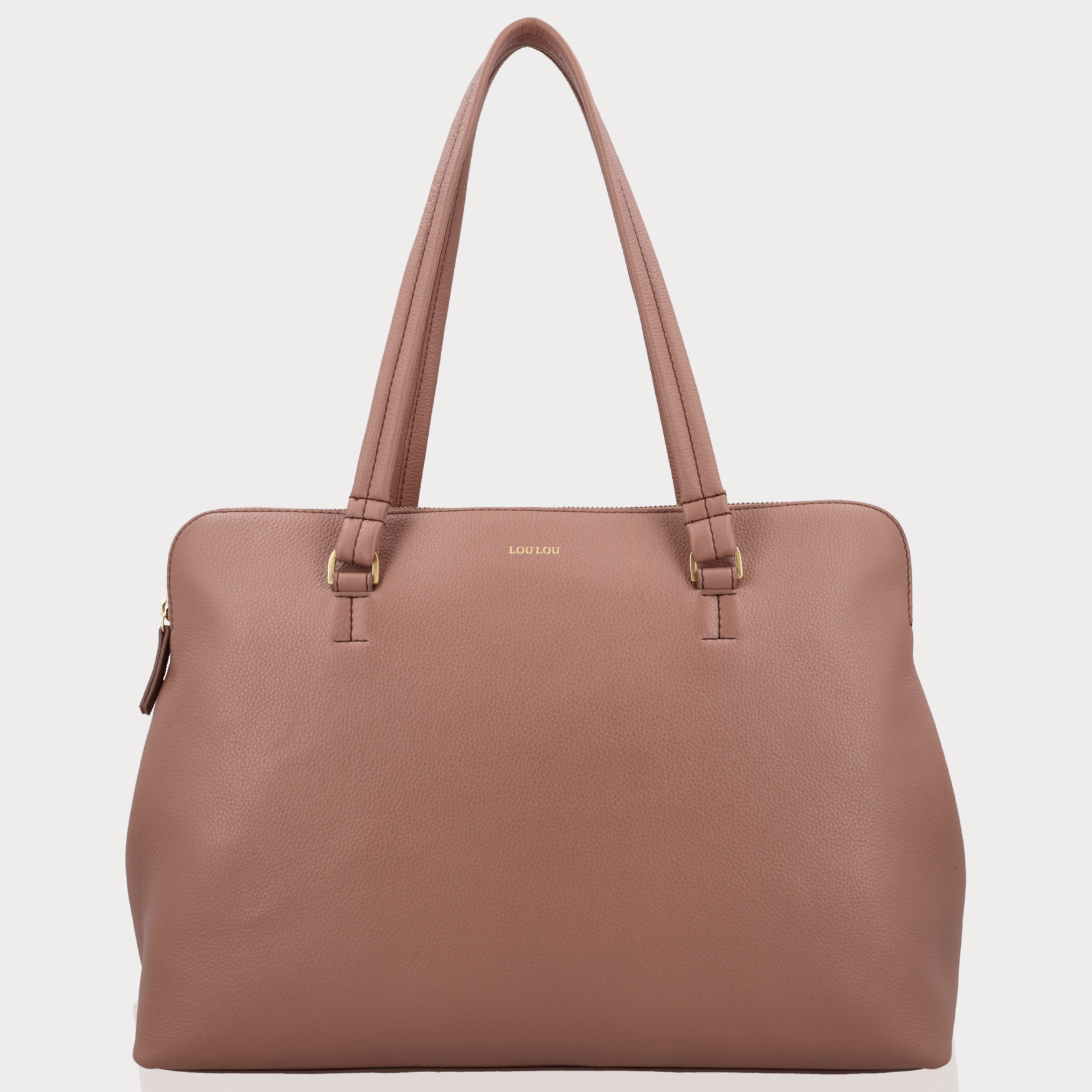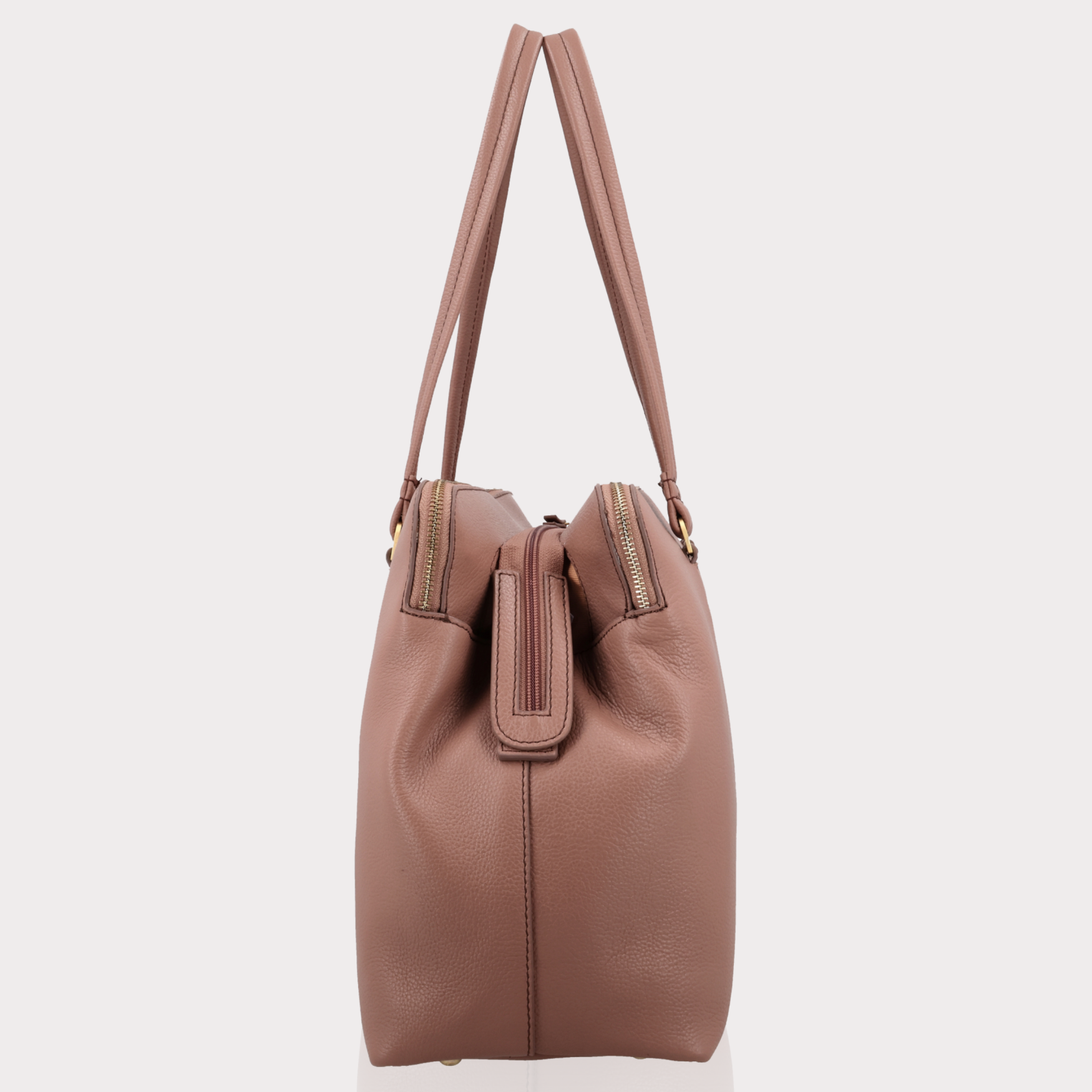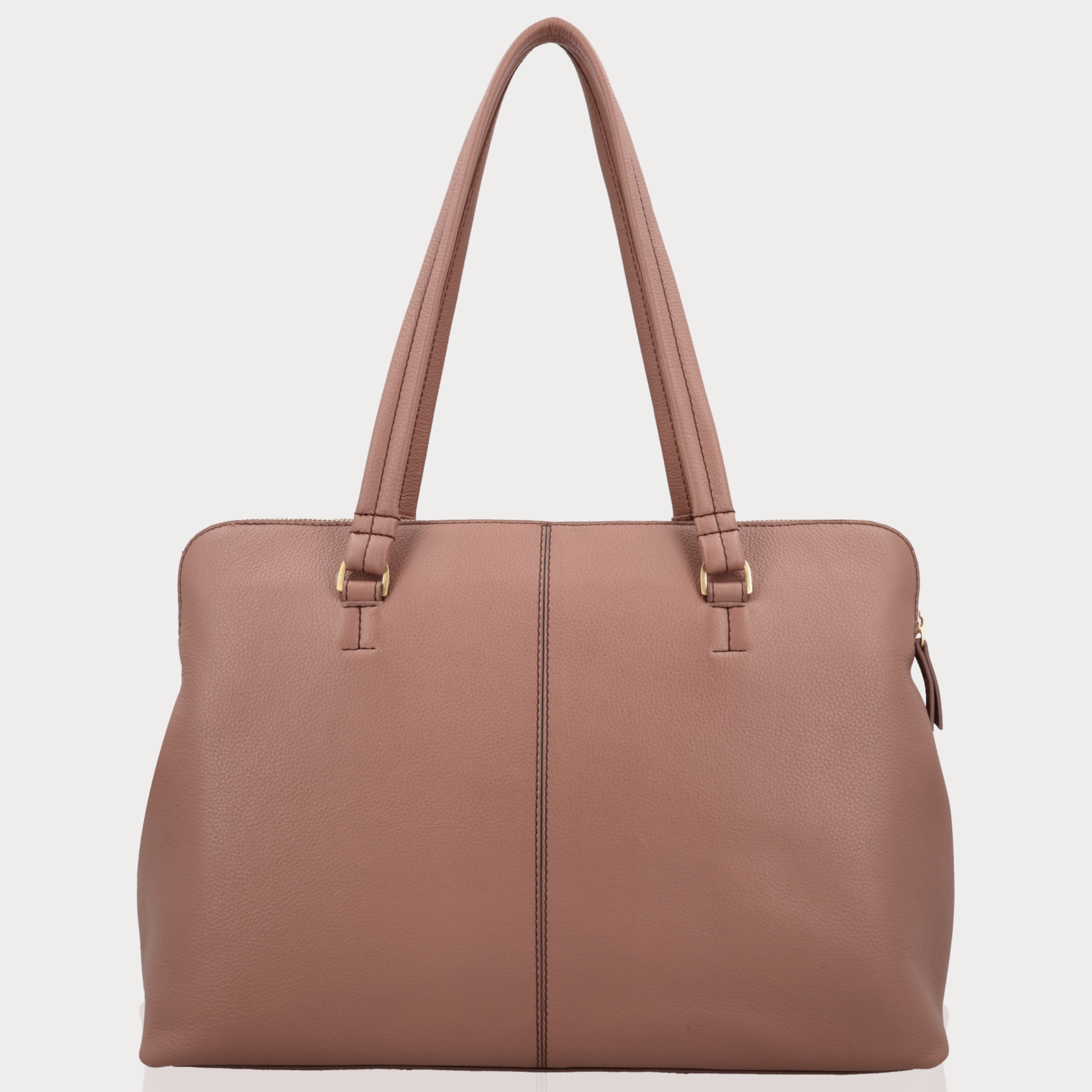 - Zachtroze grain leer met goudkleurige hardware