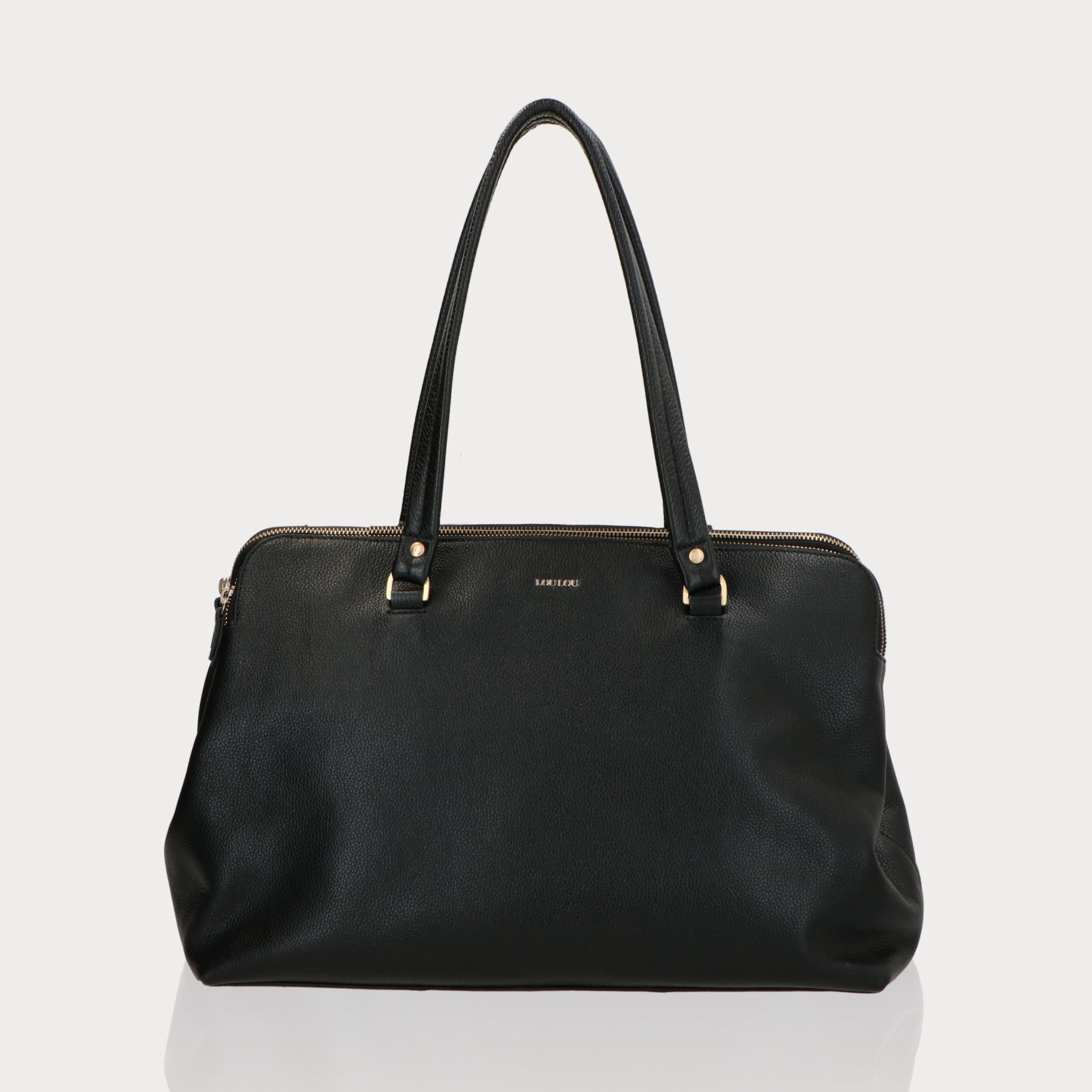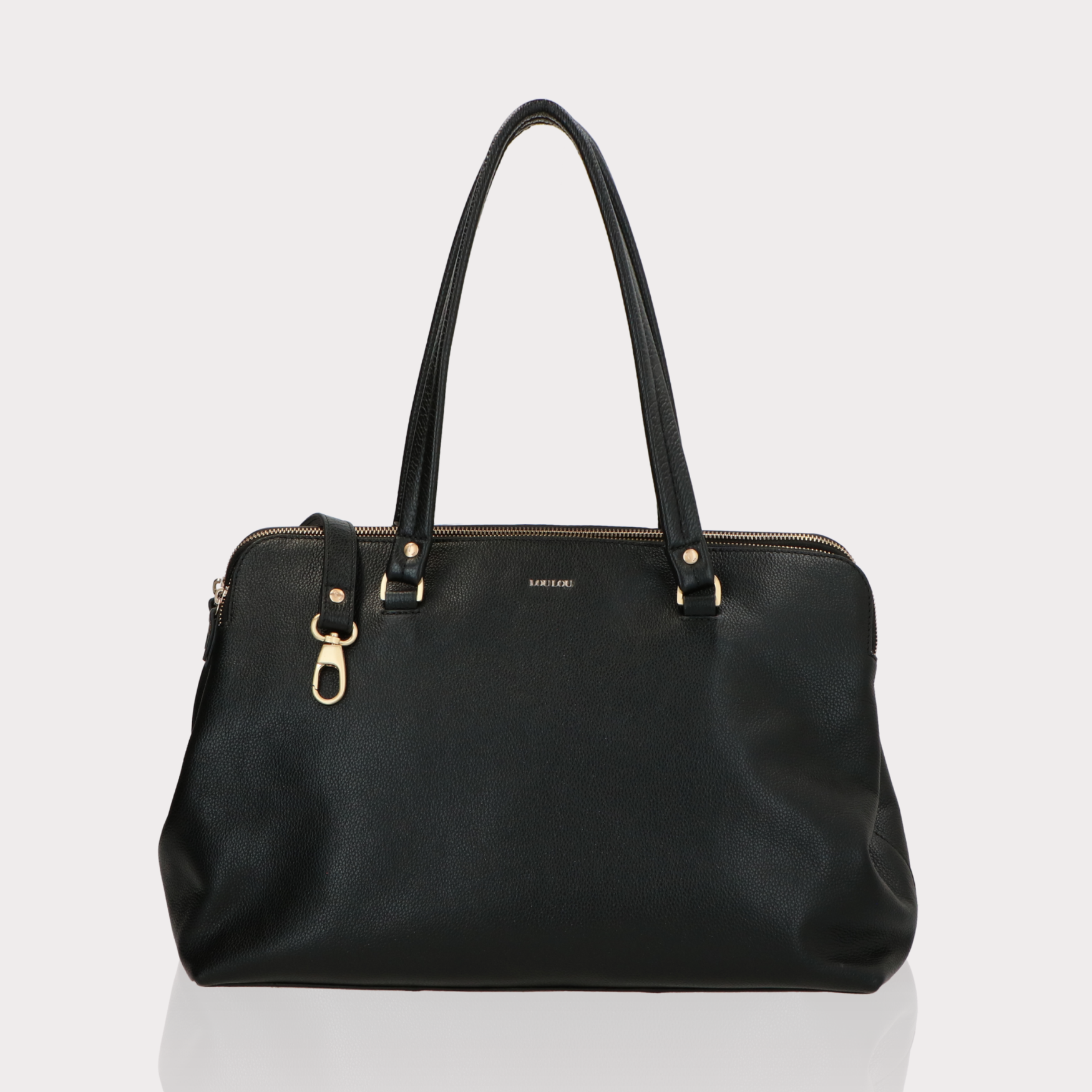 De OLIVIA Black Gold is een elegant vormgegeven laptoptas in zwart grain leer, die jouw essentials stijlvol beschermt. Dankzij de drie ritscompartimenten kun je je laptop, tablet, documenten en accessoires netjes gescheiden bewaren. Deze tas beschikt over een padded laptopvak voor een 15,6 inch laptop én een tabletvak, én komt met een verstelbare lange schouderband zodat je hem ook crossbody kunt dragen.