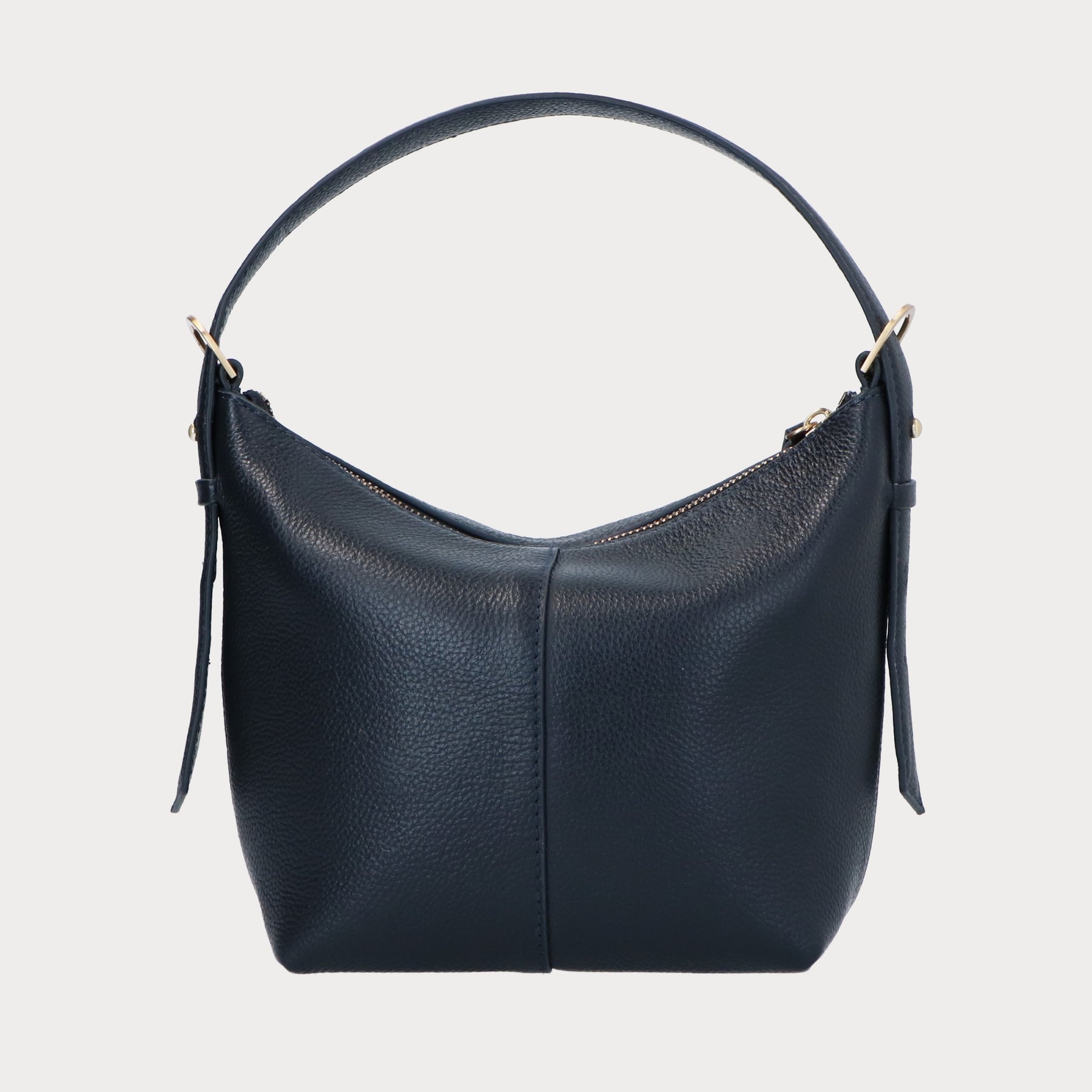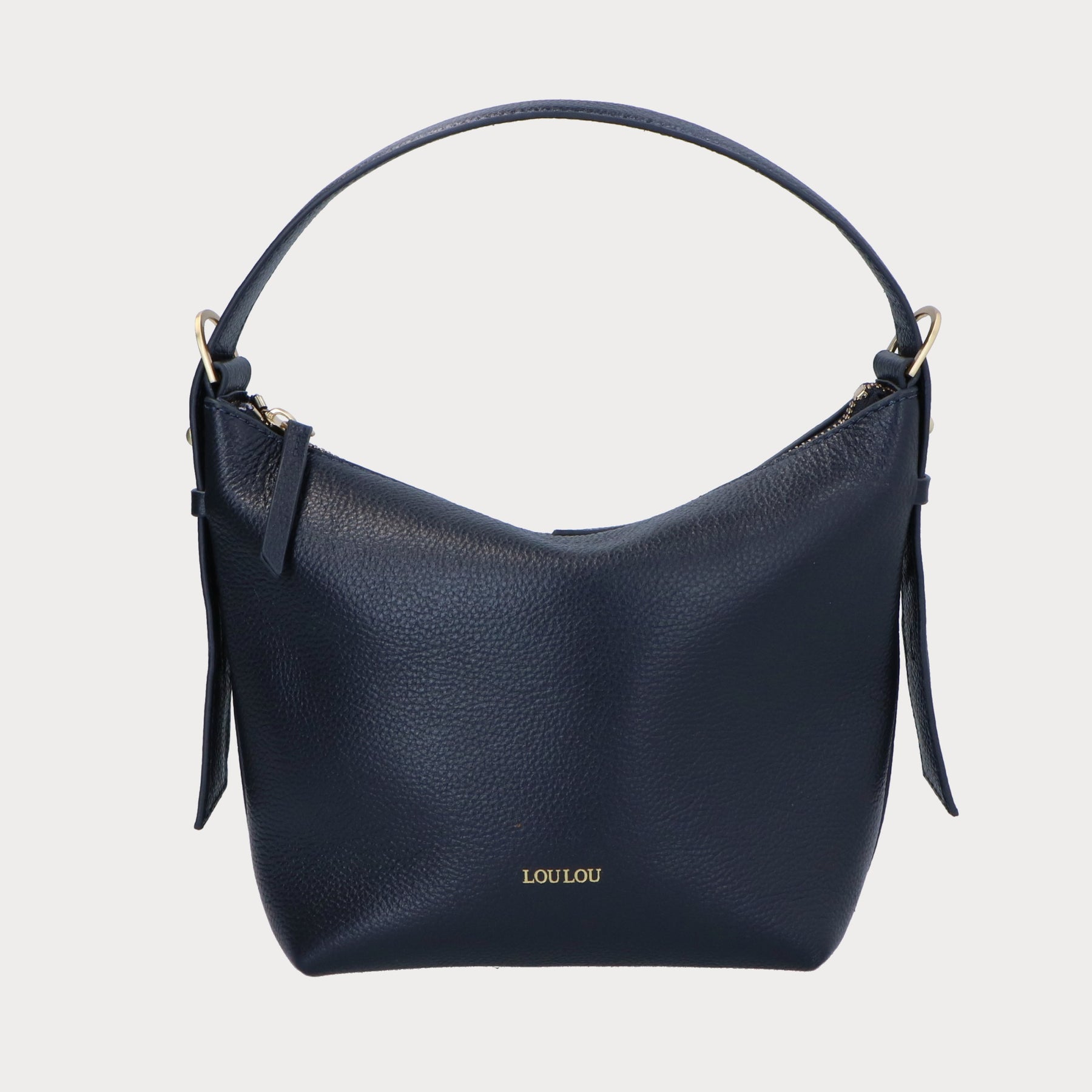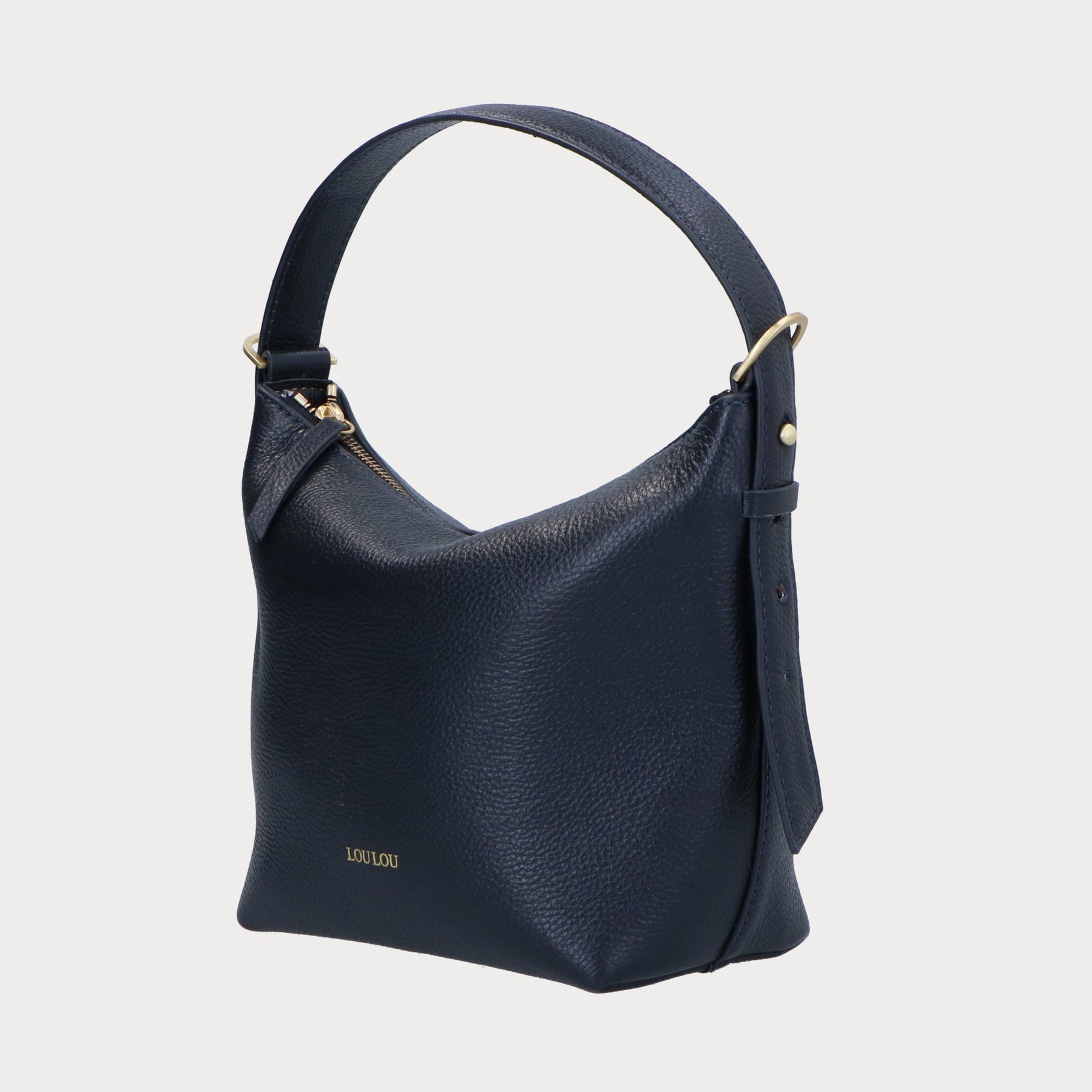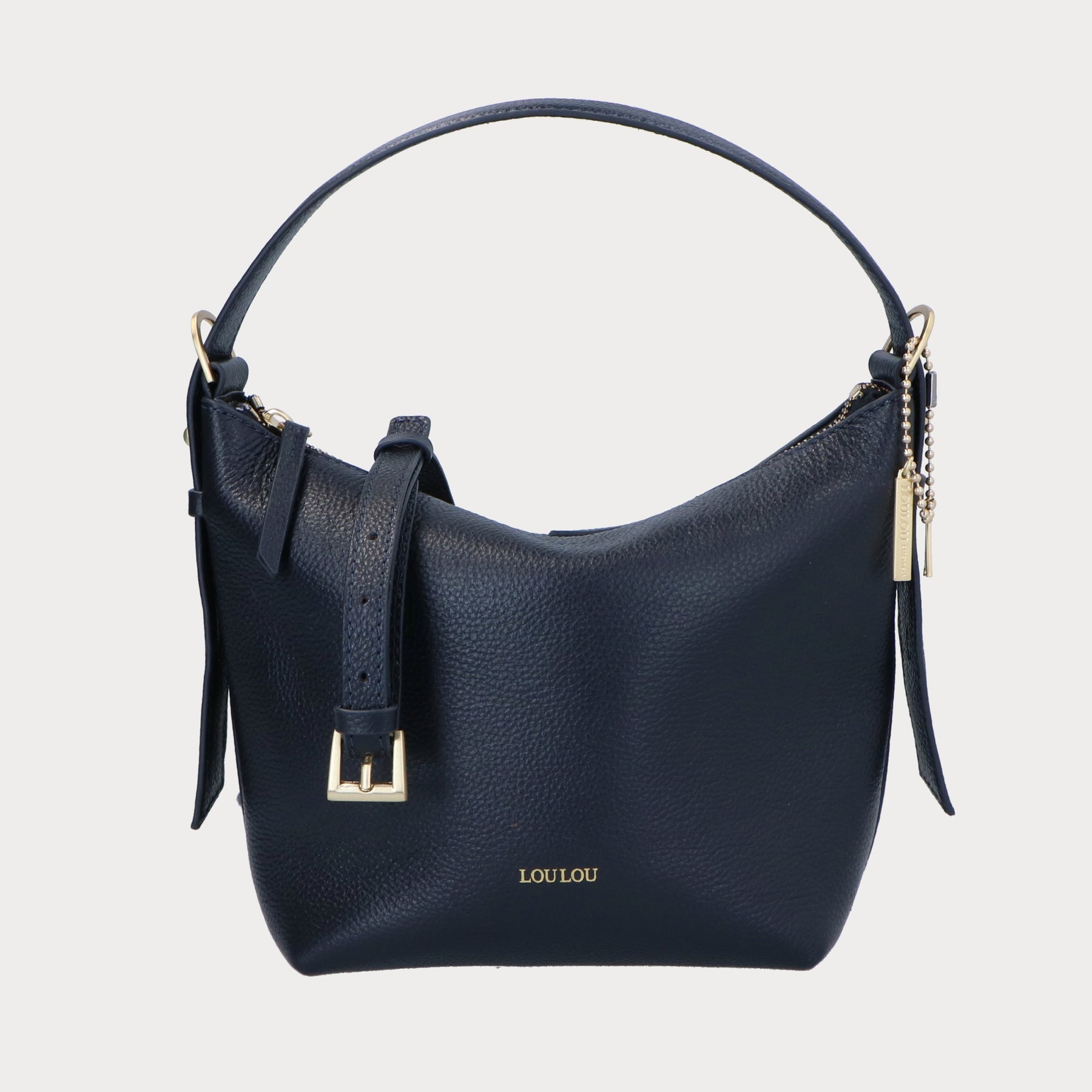 De LOIS Dark Blue Gold combineert stijl en functionaliteit in een handzaam ontwerp. Deze hobo?crossbody tas in diepblauwe tint is gemaakt van grain leer, met subtiele gouden hardware en een roze voering. Draag 'm los als schoudertas of bevestig de extra band voor crossbody gebruik.