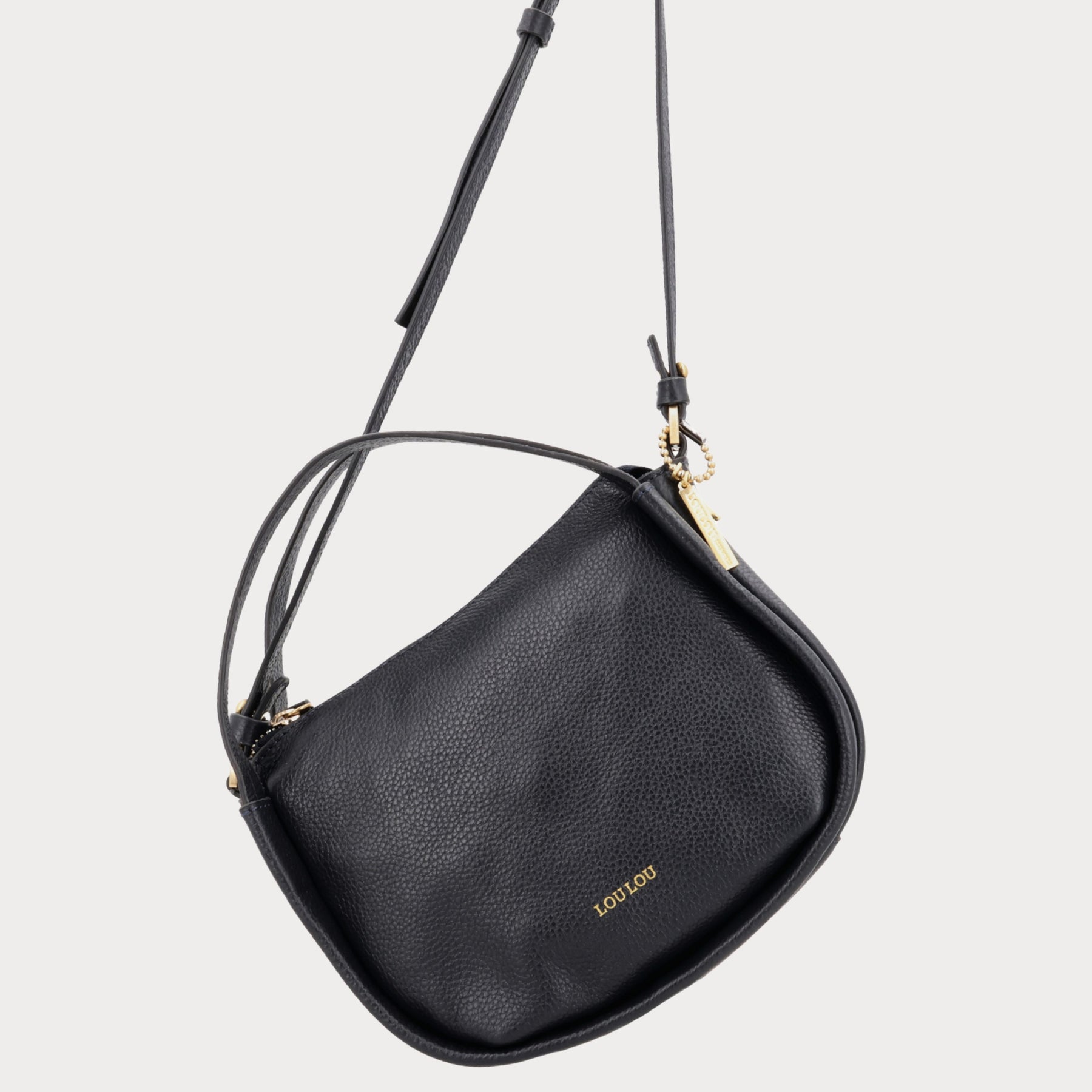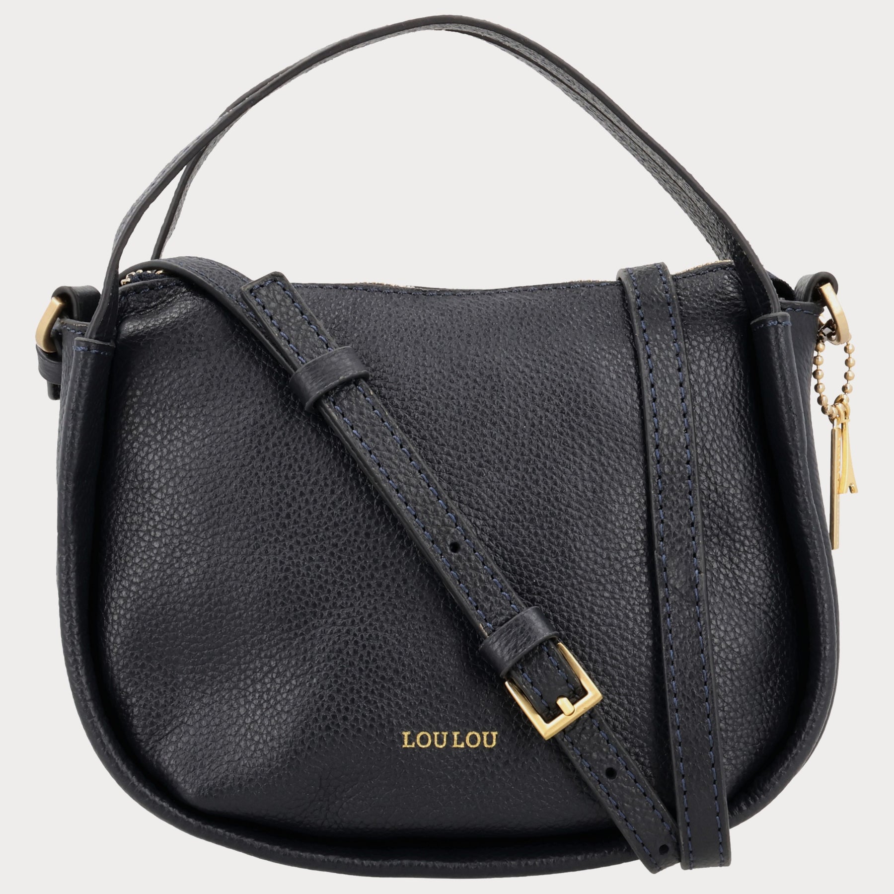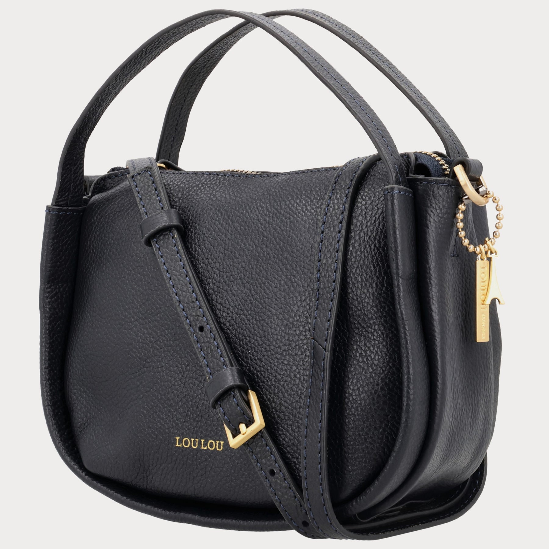 De LOU S Dark Blue Gold is een elegante tas die zowel als hobo als crossbody gedragen kan worden. Gemaakt van donkerblauw grain leer met subtiele goudkleurige accenten. Ondanks zijn compacte formaat biedt hij praktische functionaliteit, met ruimte voor je essentials en slimme verdeling in het interieur.