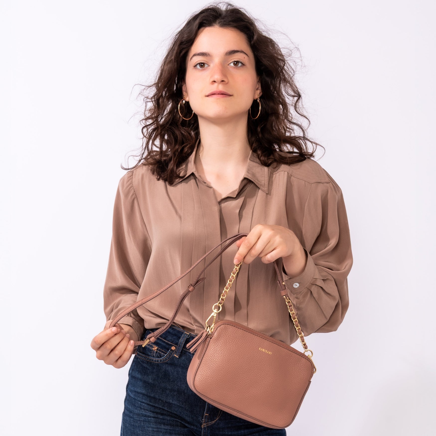 De ZOË Mocha Mousse Gold straalt vrouwelijkheid en elegantie uit. Deze compacte tas in zachte bruinroze tint is gemaakt van soepel Grain-leer en voorzien van goudkleurige accenten. Dankzij de praktische indeling met zes creditcardvakken, een muntgeldvak en telefoonvak kun je de tas ook als portemonnee gebruiken. Met RFID-bescherming voor optimale veiligheid.