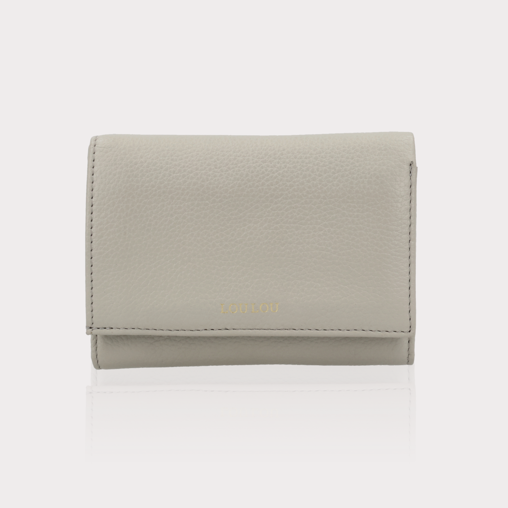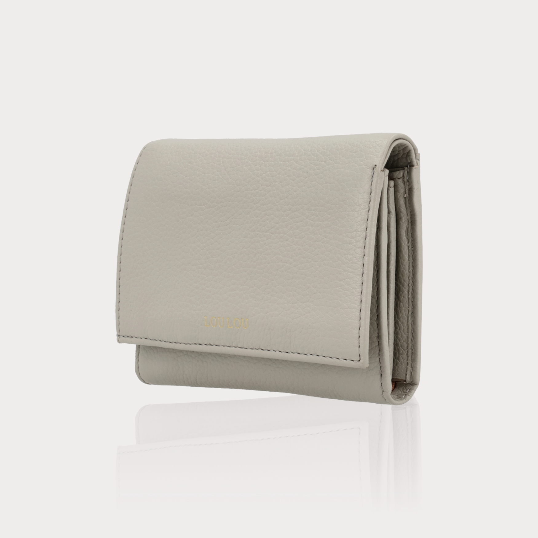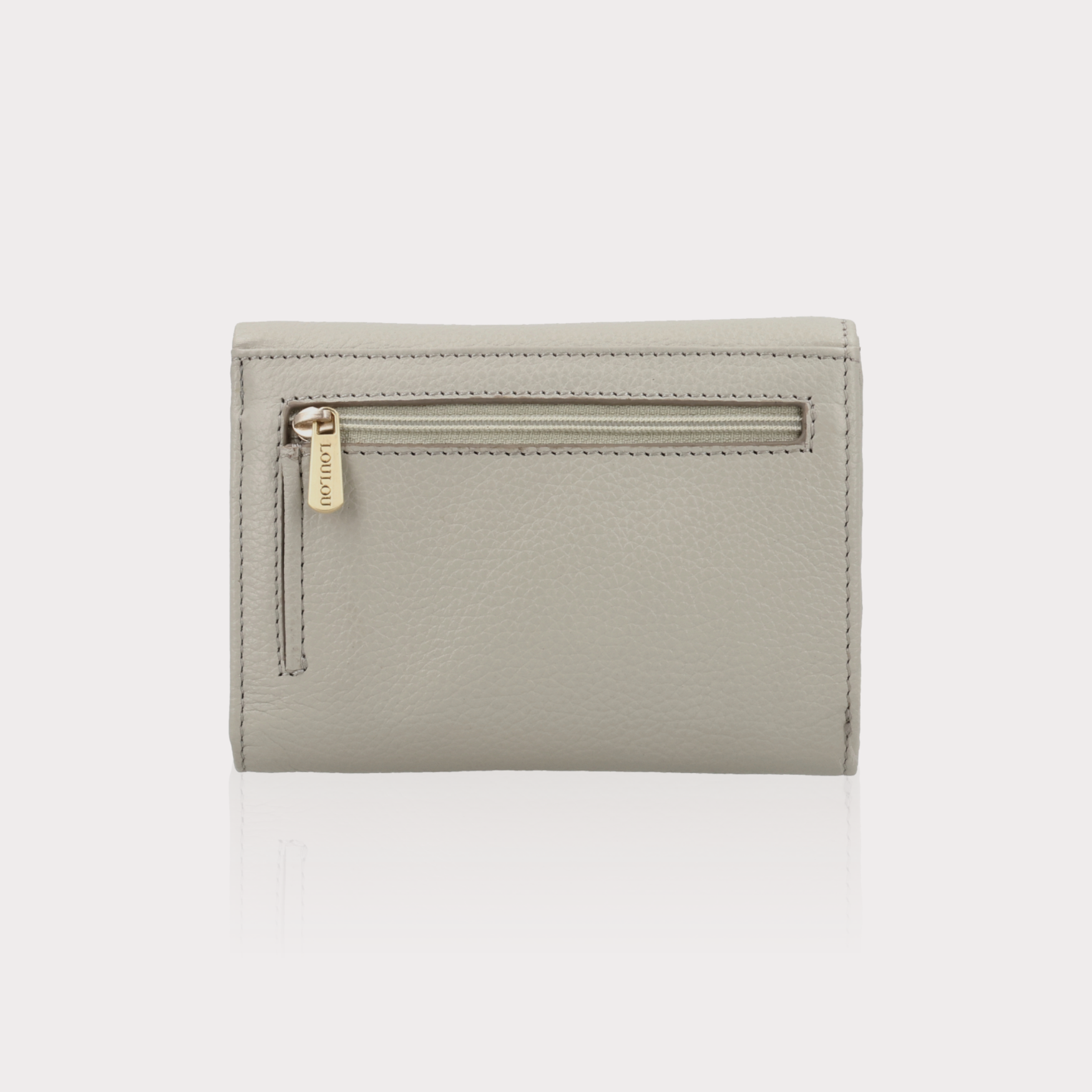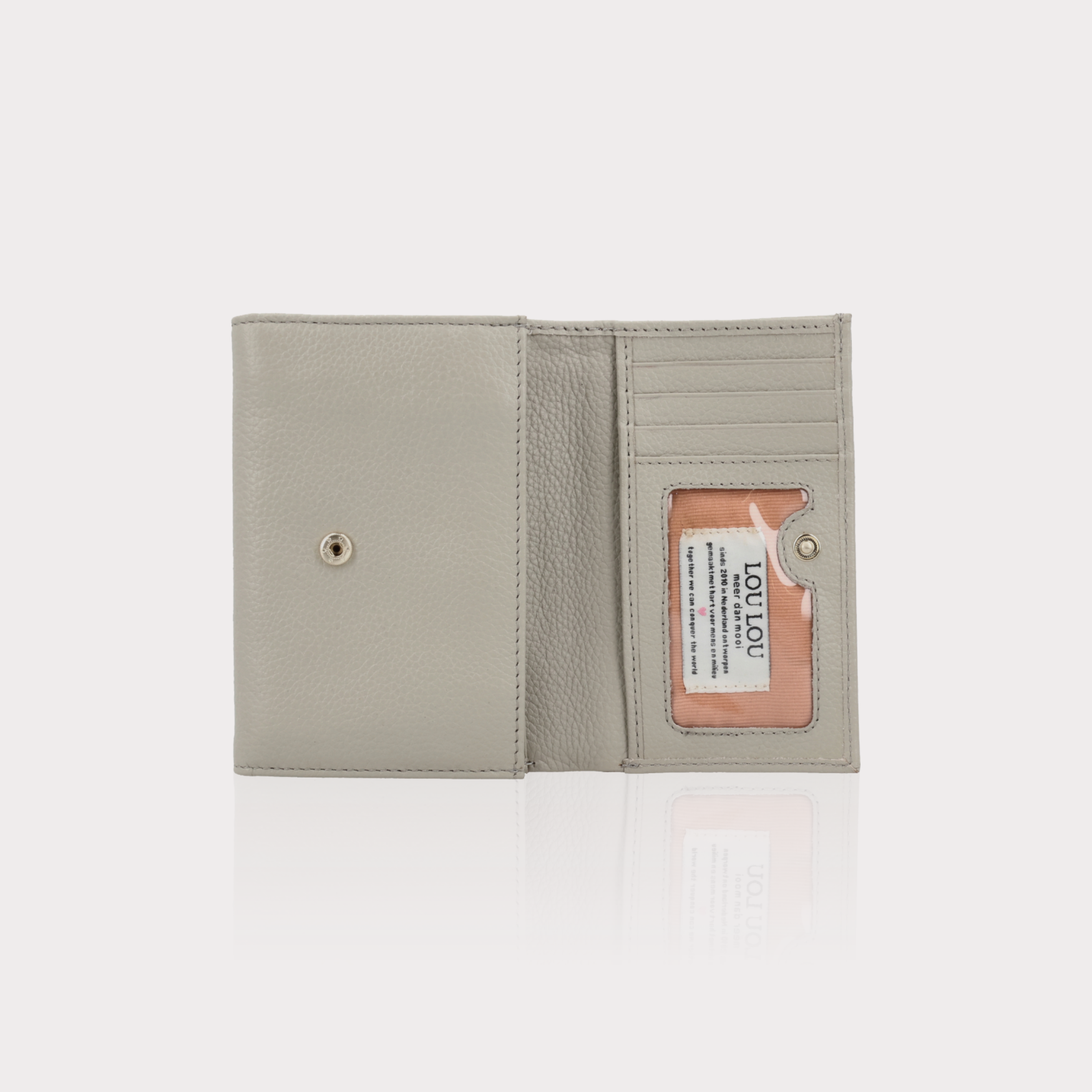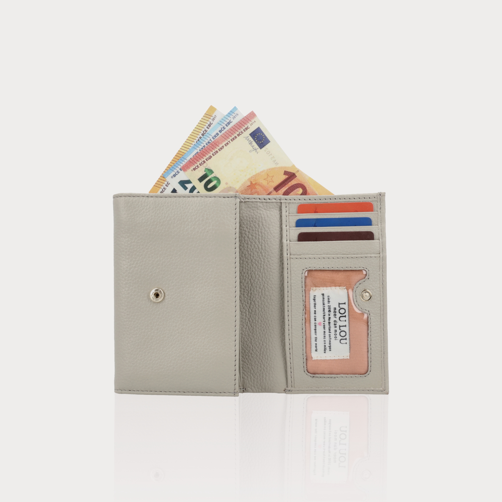 De PETITE FLEUR Fog Gold combineert een subtiele grijstint met praktische functionaliteit. Deze compacte portemonnee biedt meerdere pasvakjes, een muntvak, extra vakken en heeft een verfijnde uitstraling.
