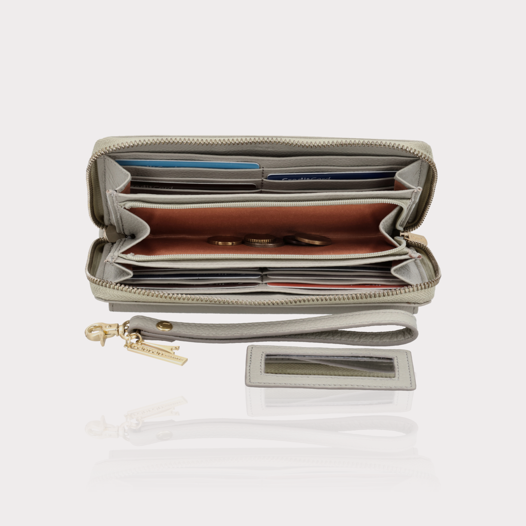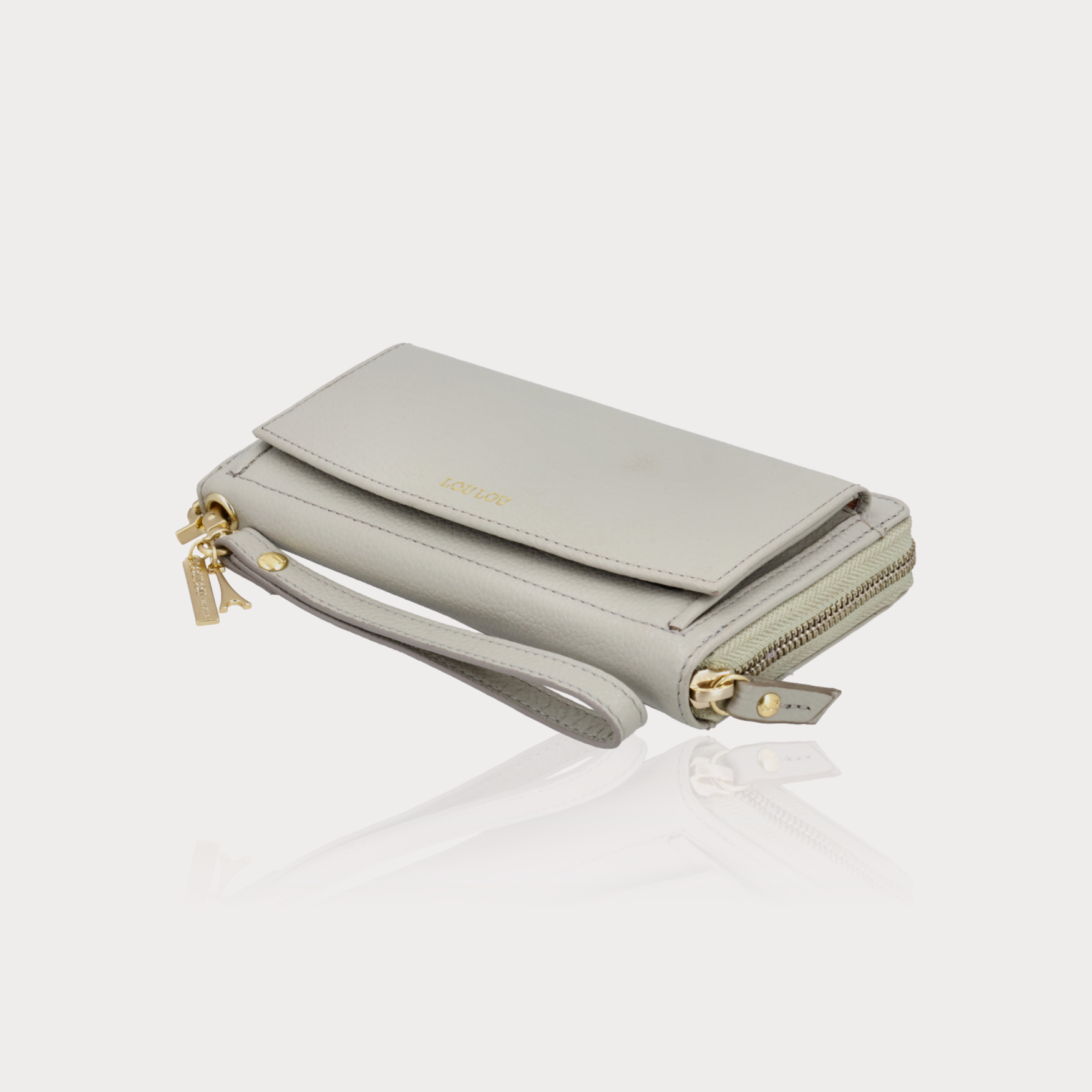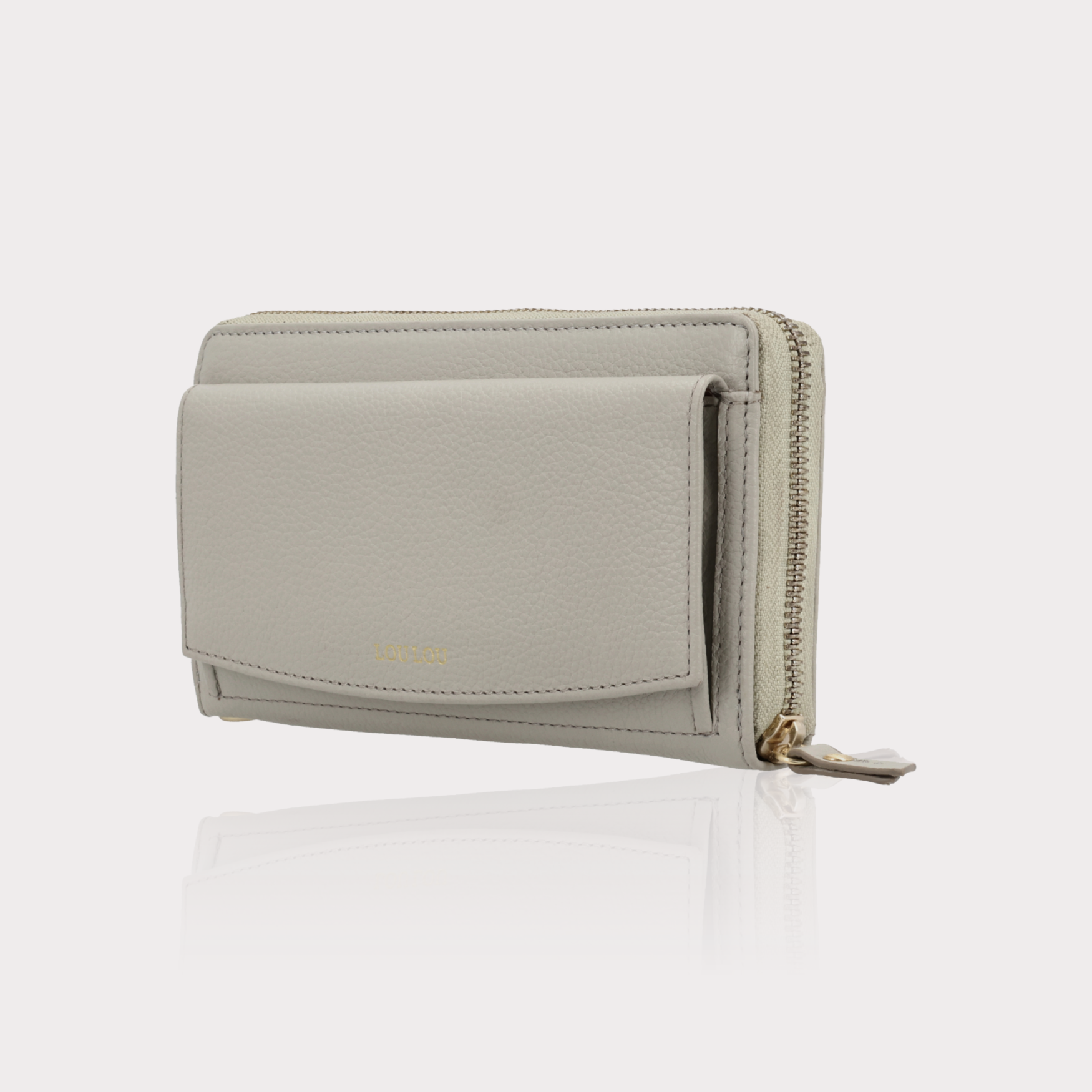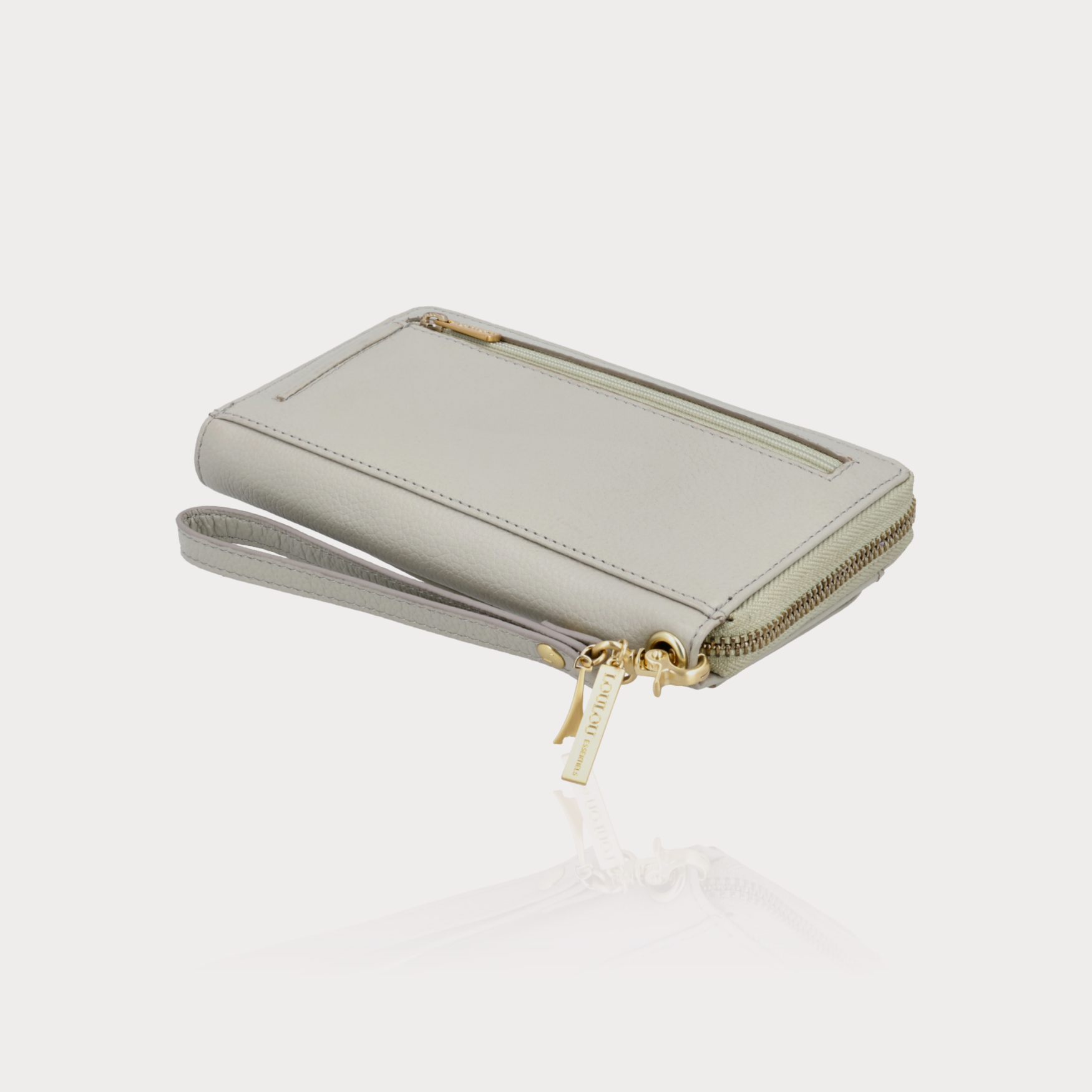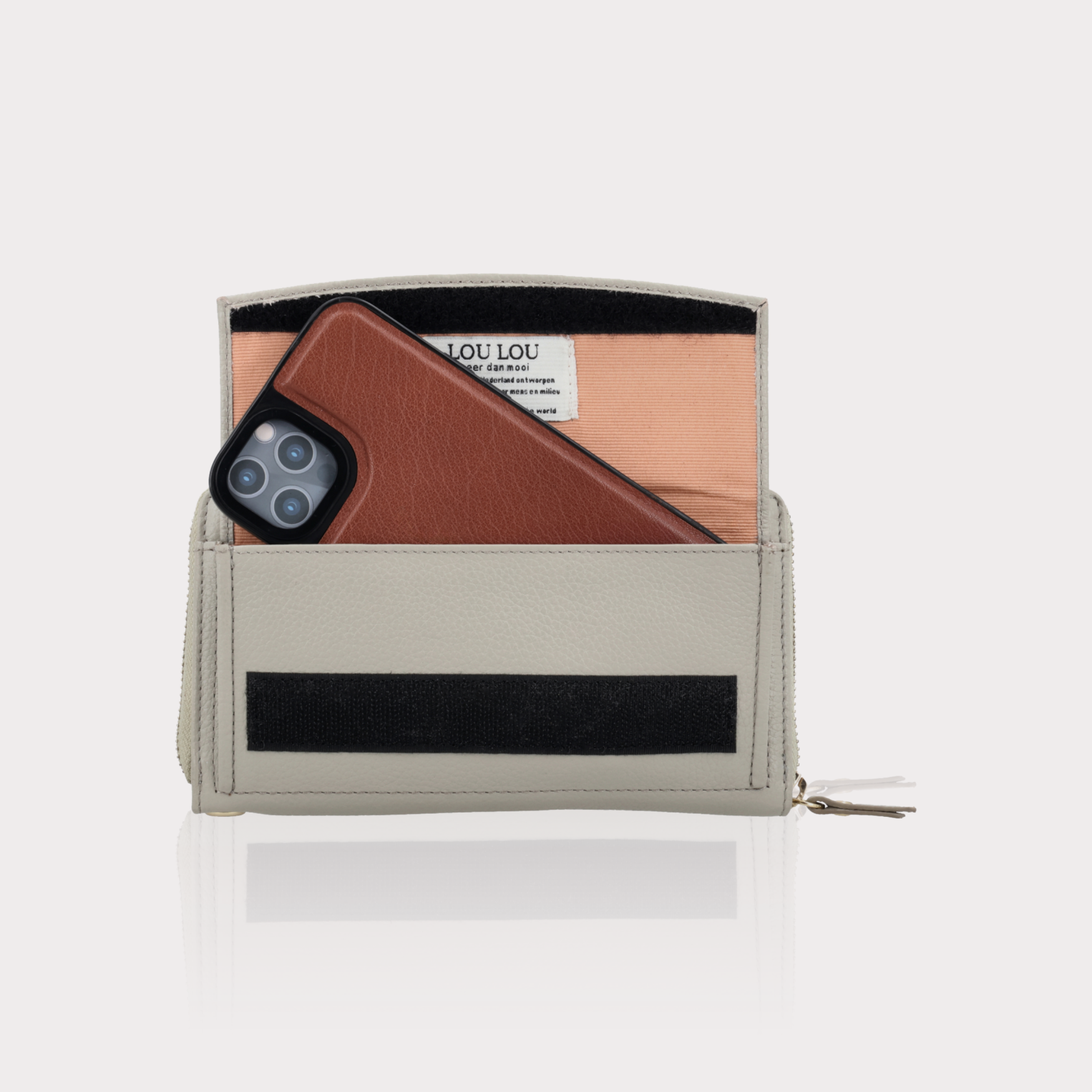 De Smart Little Bag – SLB – in de kleur Fog straalt rust en verfijning uit. Fog is een zachte grijsgroene tint die moeiteloos combineert met zowel koele als warme kleuren. Goudkleurige hardware complimenteert de look, en het leer voelt soepel en luxe aan.