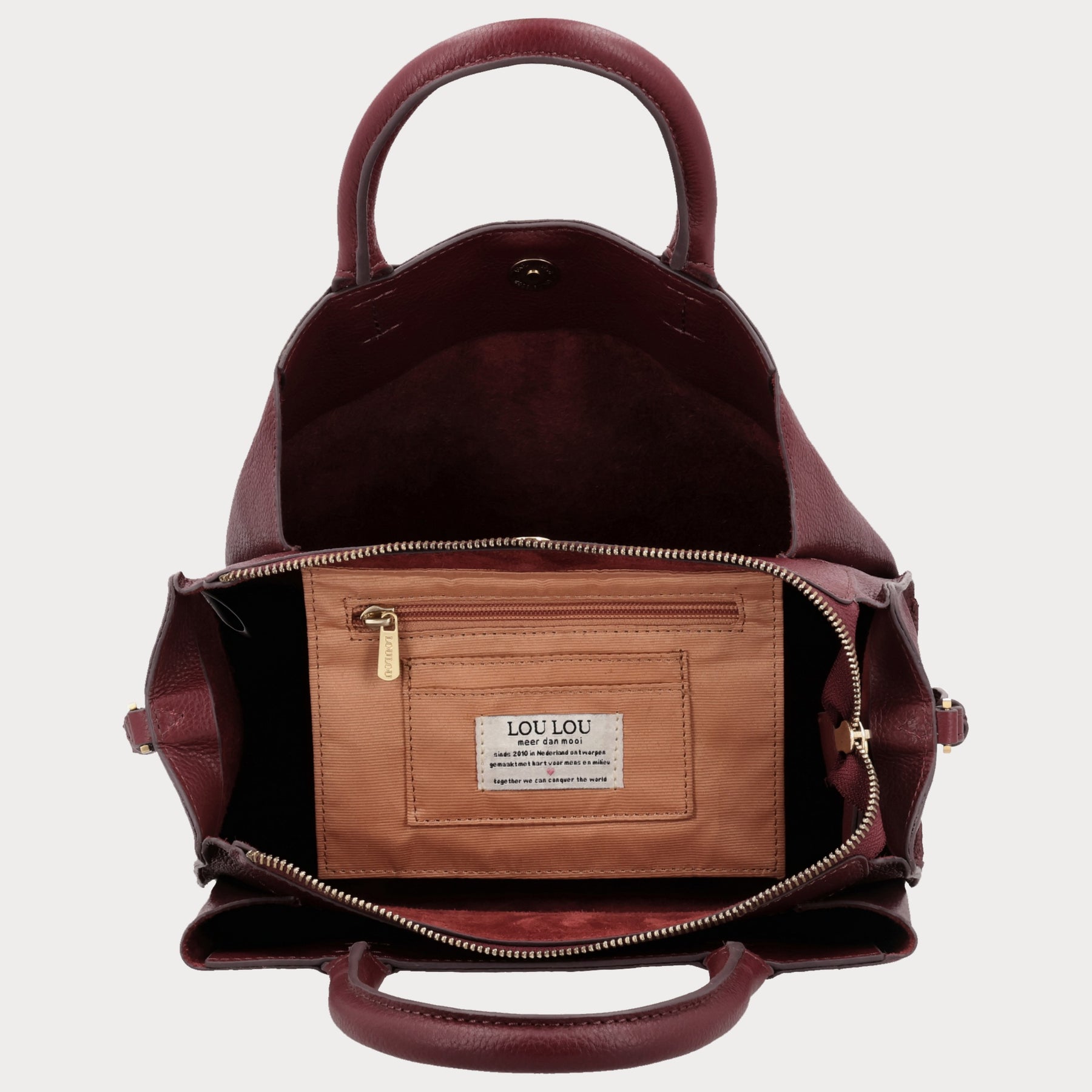De VERA Ruby Gold is een opvallende tas in robijnrood grain leer. Voorzien van drie compartimenten, interne vakindeling, RFID?beveiliging en draagopties als schouder? of crossbodytas. Ideaal voor wie kleur durft te dragen.