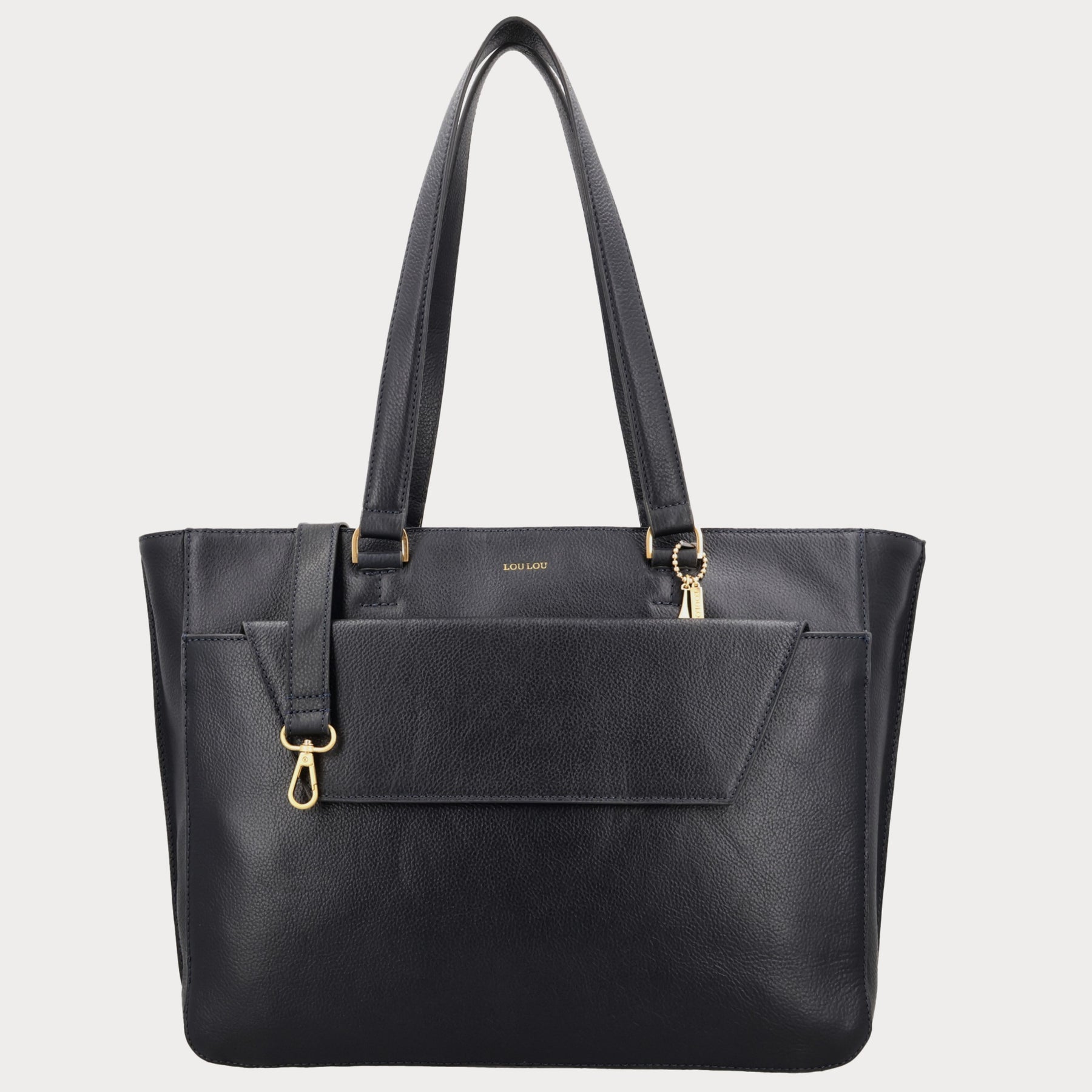 - Gemaakt van donkerbauw grain leer met goudkleurige hardware