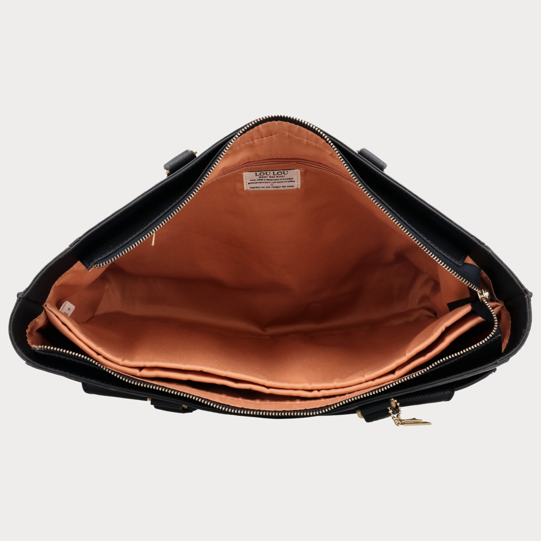 Het leer van deze tas is duurzaam gelooid en komt uit LWG-gecertificeerde looierijen. Het atelier waar deze tas is gemaakt draait op zonne-energie en biedt kansen aan vrouwen met een economische achterstand.