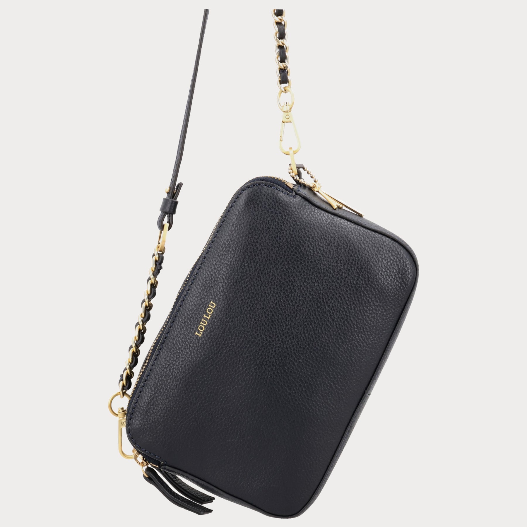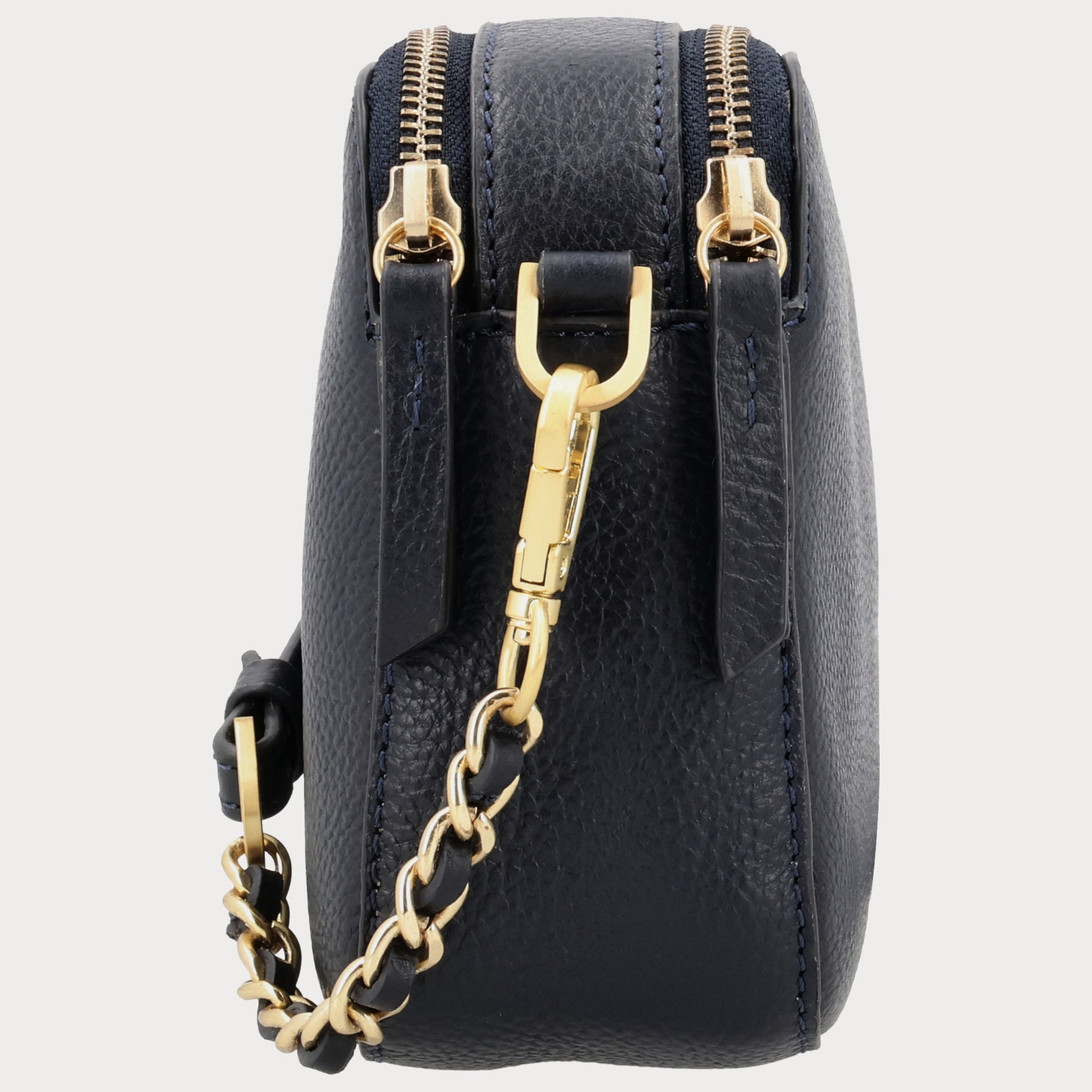 De ZOË Dark Blue Gold is een elegante crossbodytas in diep donkerblauw Grain-leer, afgewerkt met goudkleurige hardware. Deze compacte tas heeft ruimte voor zes pasjes, een ritsvak voor muntgeld en een telefoonvak, waardoor hij ook als portemonnee te gebruiken is. Dankzij de RFID-bescherming blijven je persoonlijke gegevens veilig.
