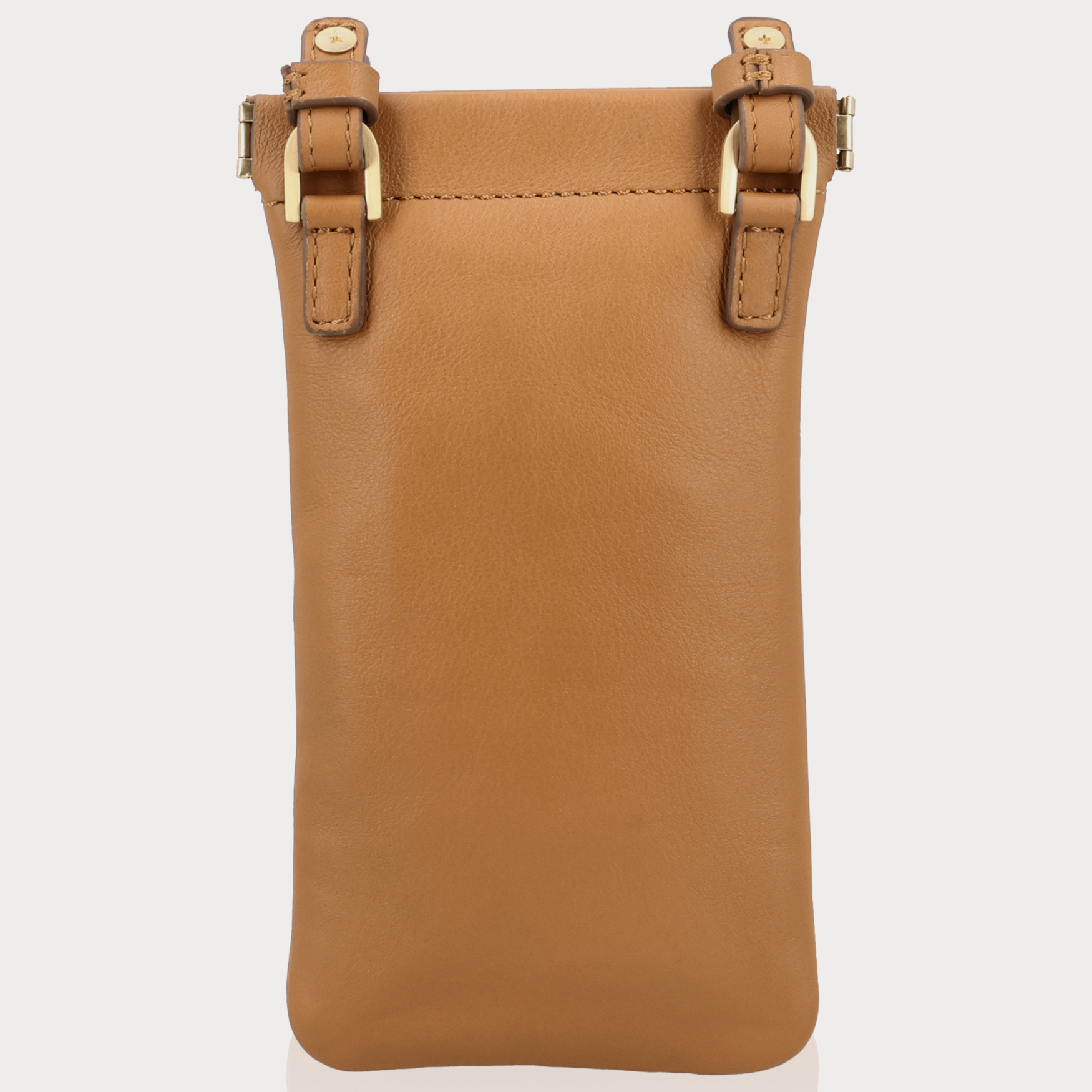 MIA Tan Gold – Cognac leren telefoontasje met knijpsluiting
