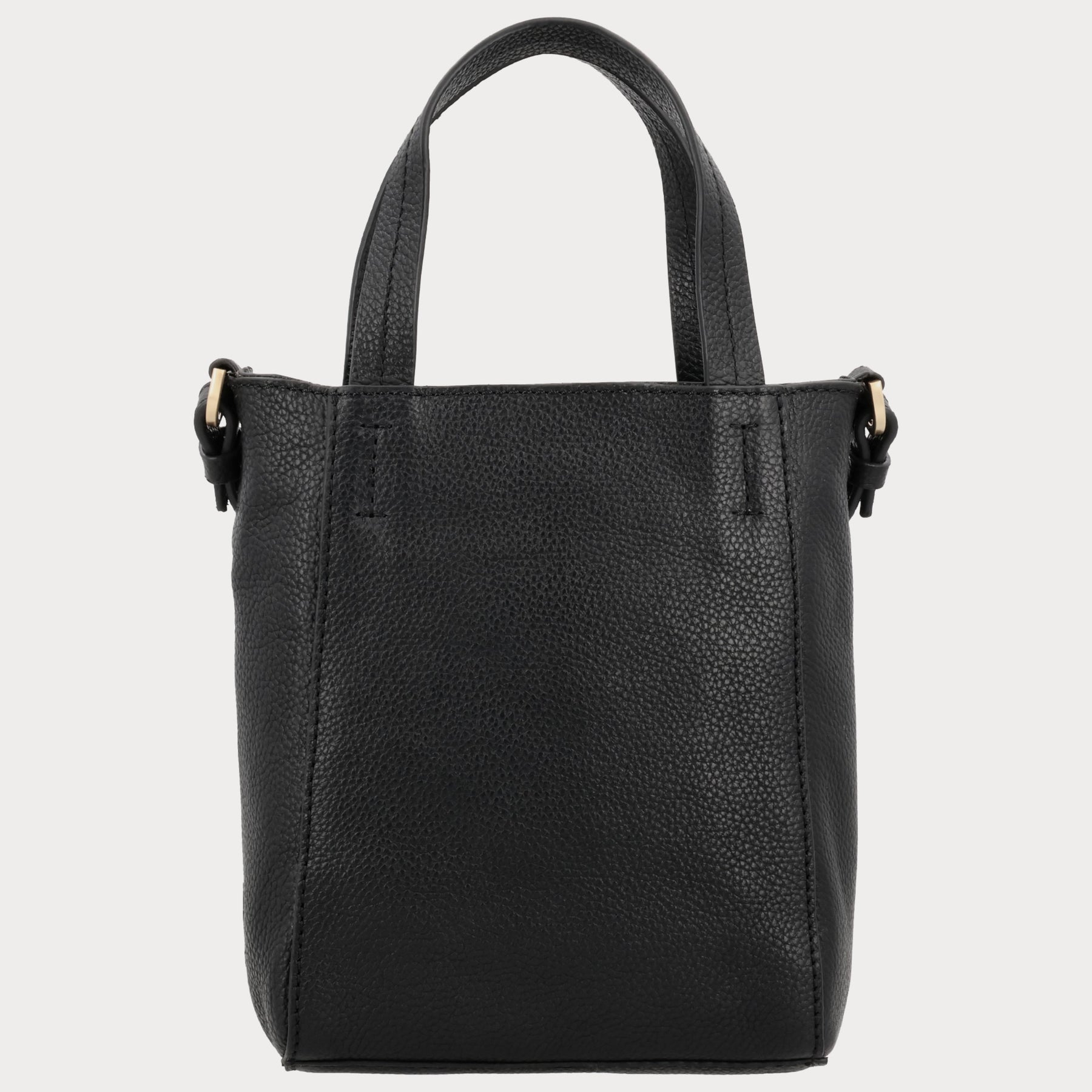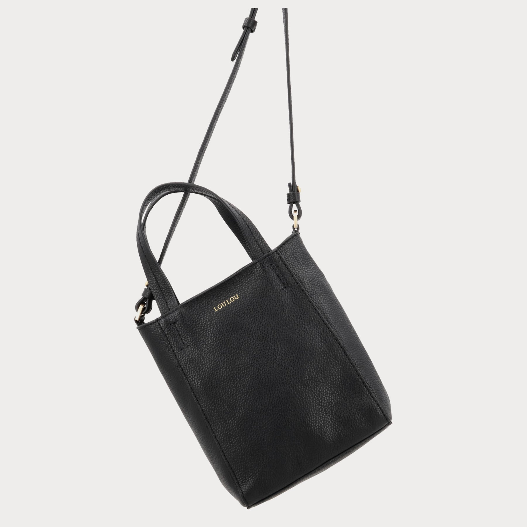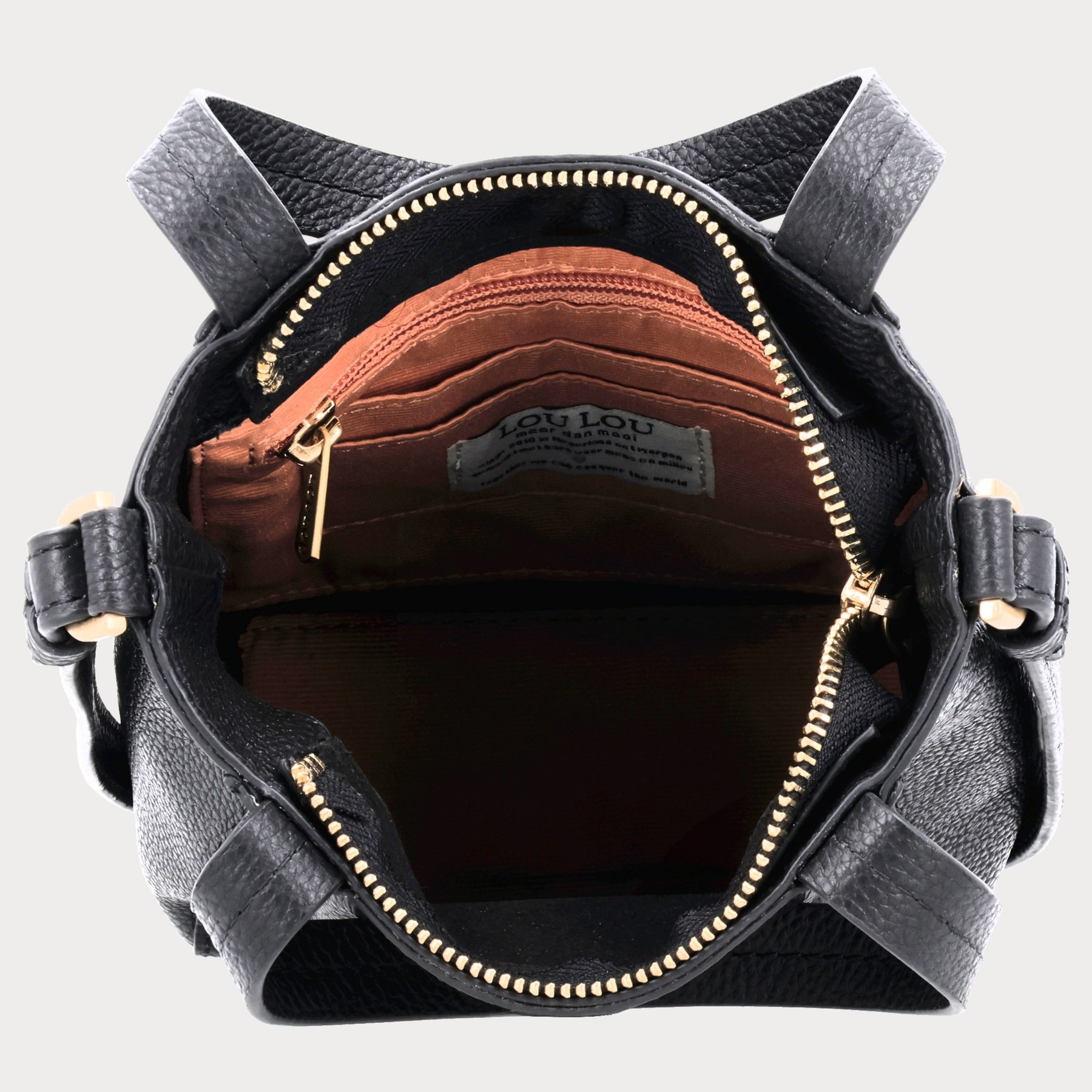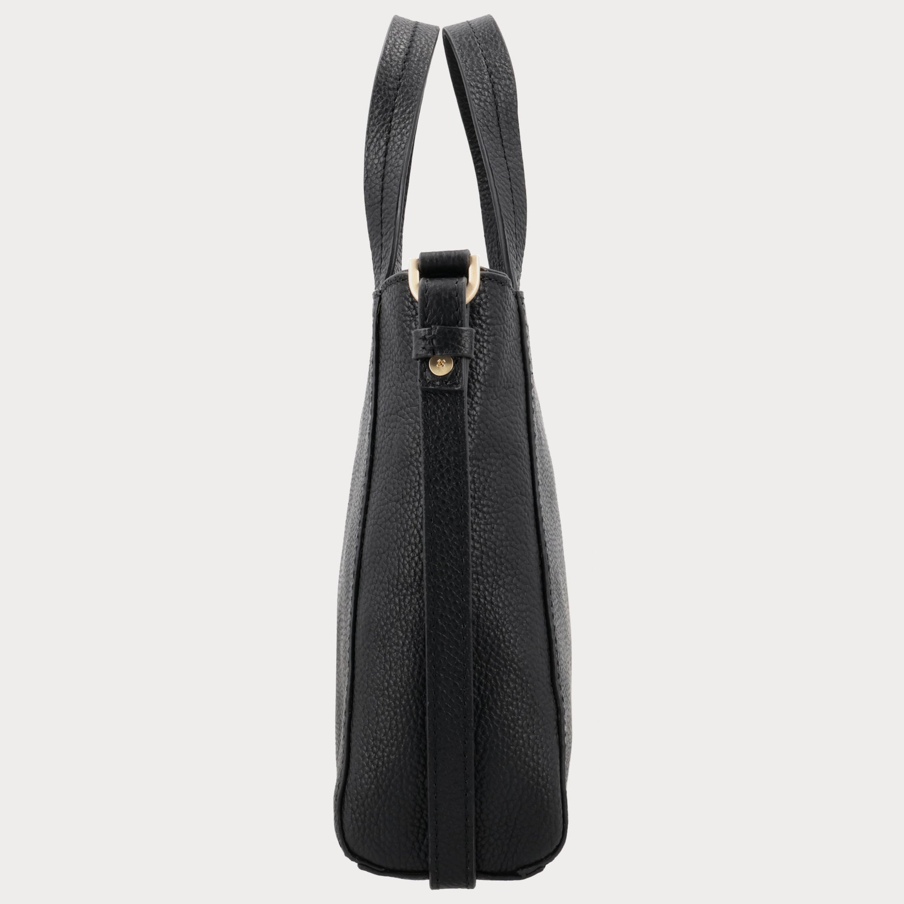 - Zwart grain leer met goudkleurige hardware