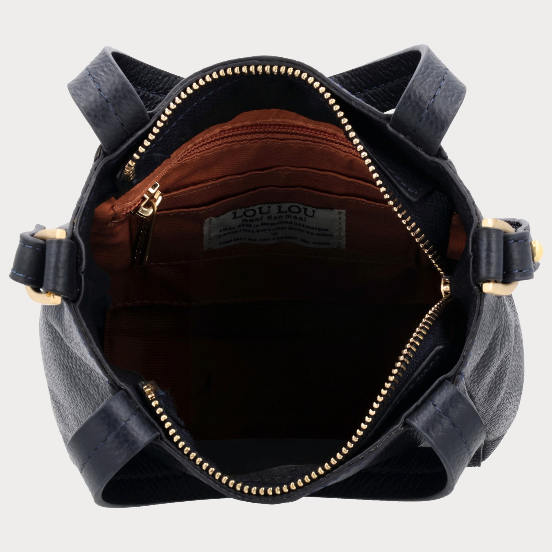 NAOMI Dark Blue Gold – Donkerblauwe leren crossbodytas met RFID